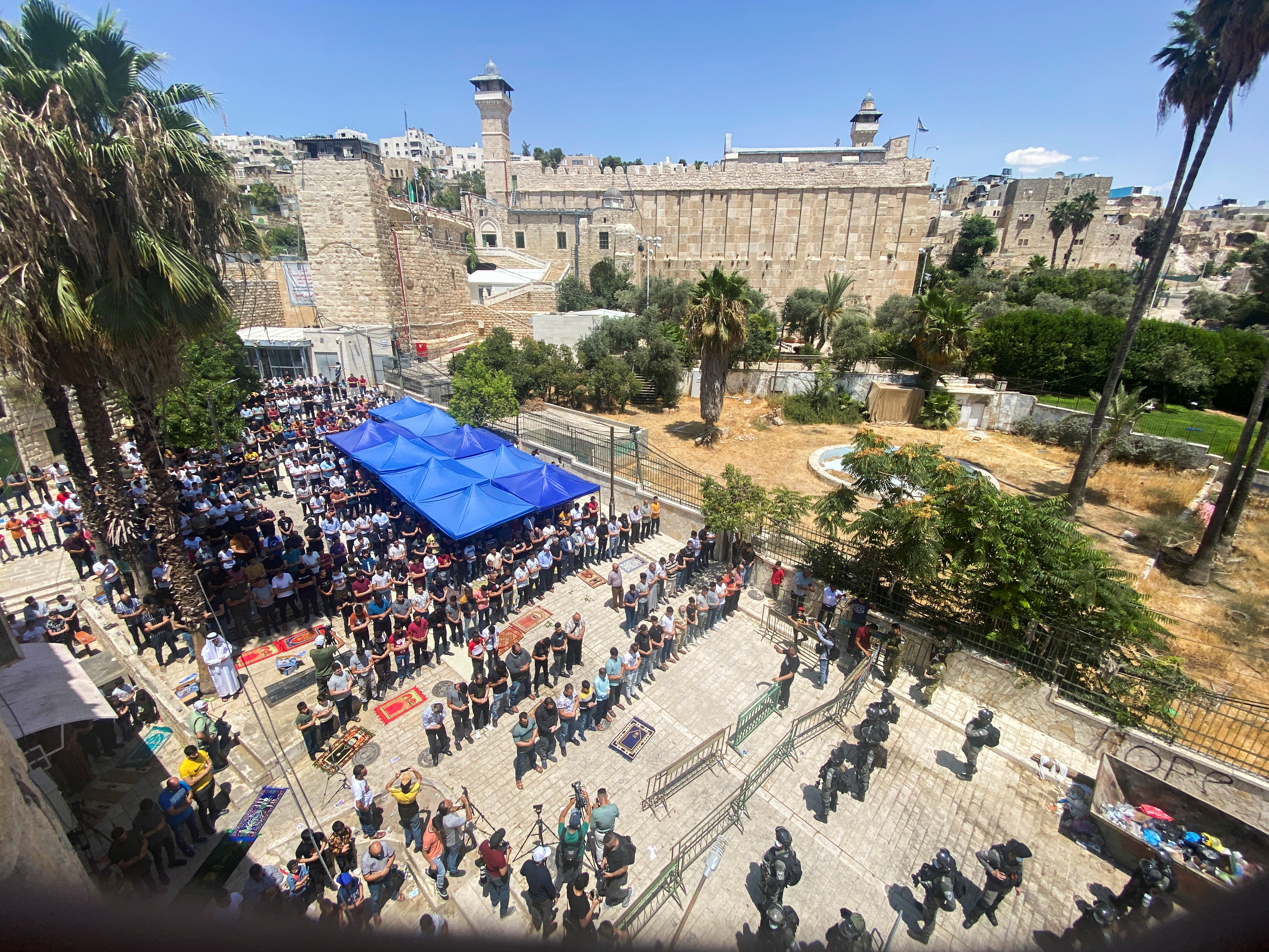 Israeli security forces used stun grenades to disperse a crowd of Muslim worshippers performing traditional Friday prayers outside the Ibrahimi Mosque in the occupied West Bank city of Hebron.