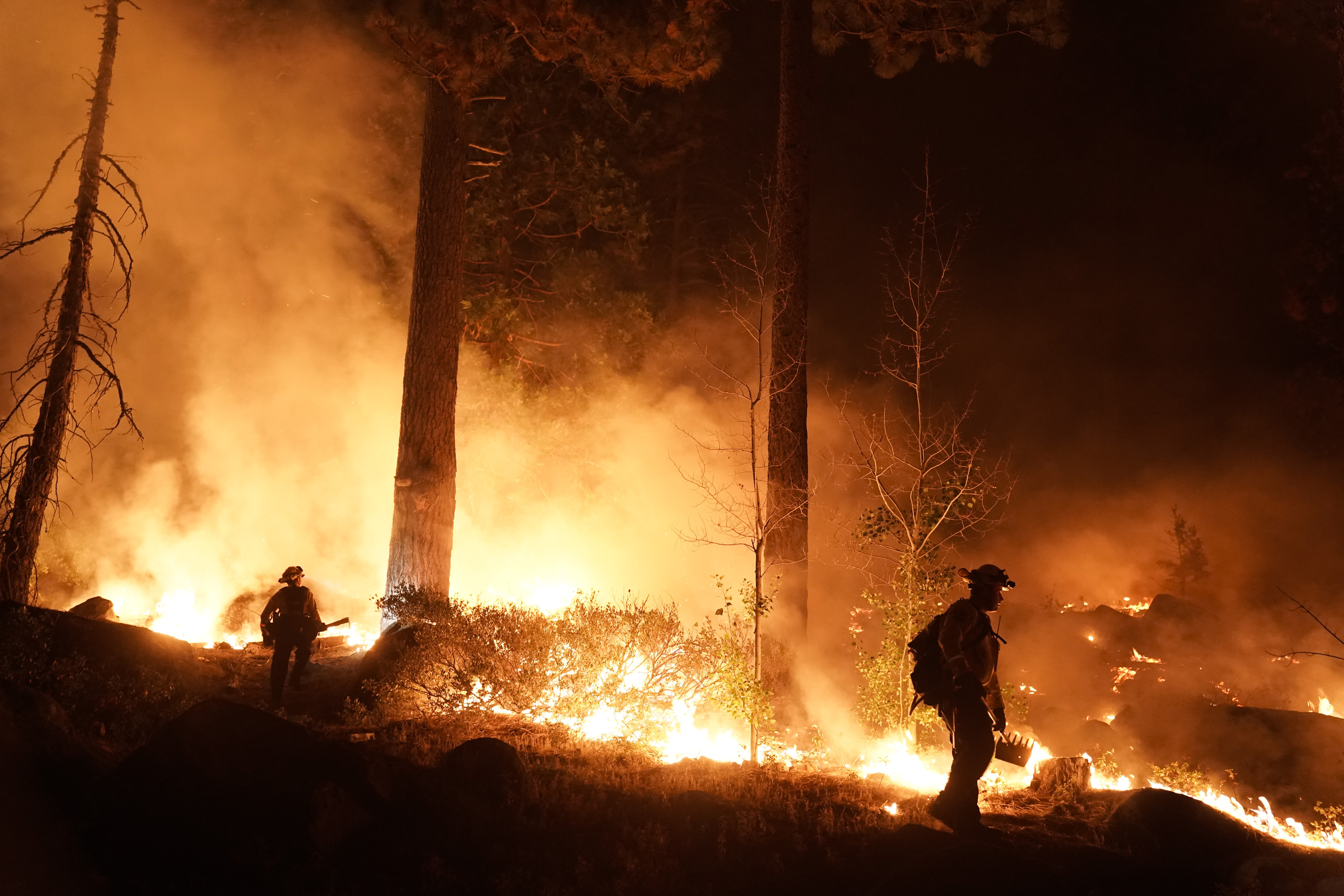 More firefighters arrived just after dark Monday and many were dispatched to protect homes in the Christmas Valley area, about 16km (10 miles) from the city of South Lake Tahoe.