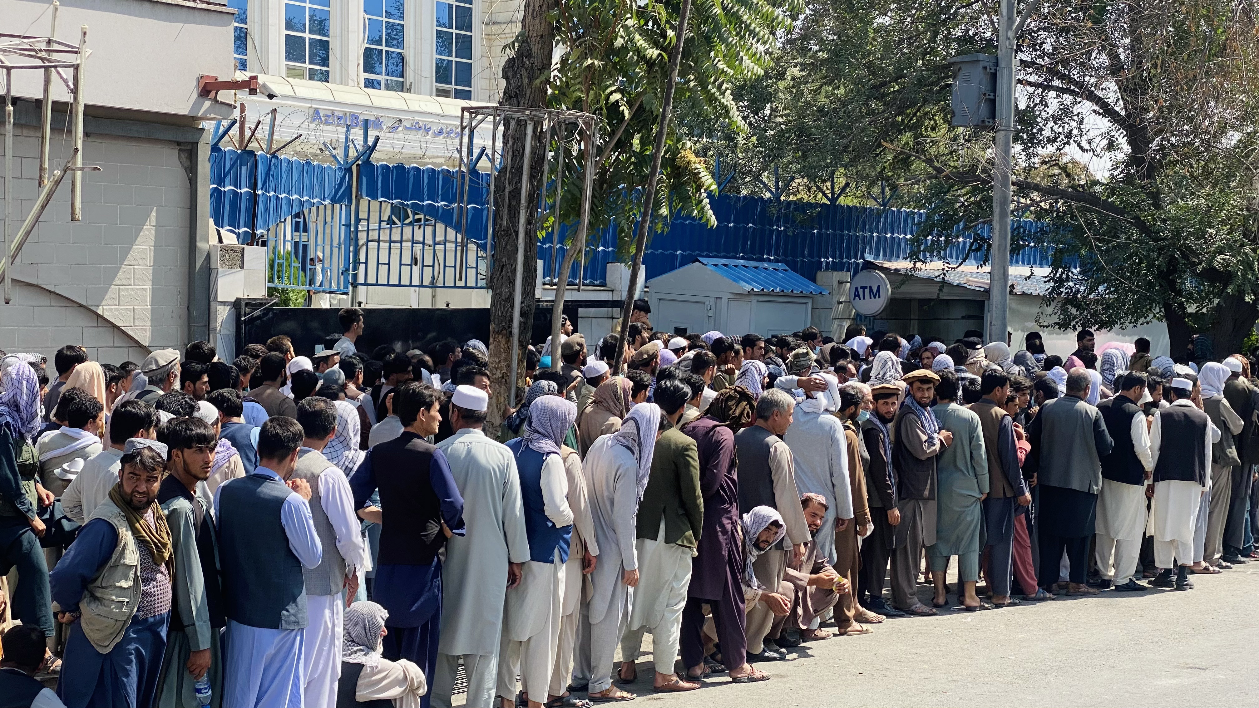 “Outside of Kabul’s main bank, the Taliban are only allowing 10 customers at one time, as hundreds more wait their turn.”