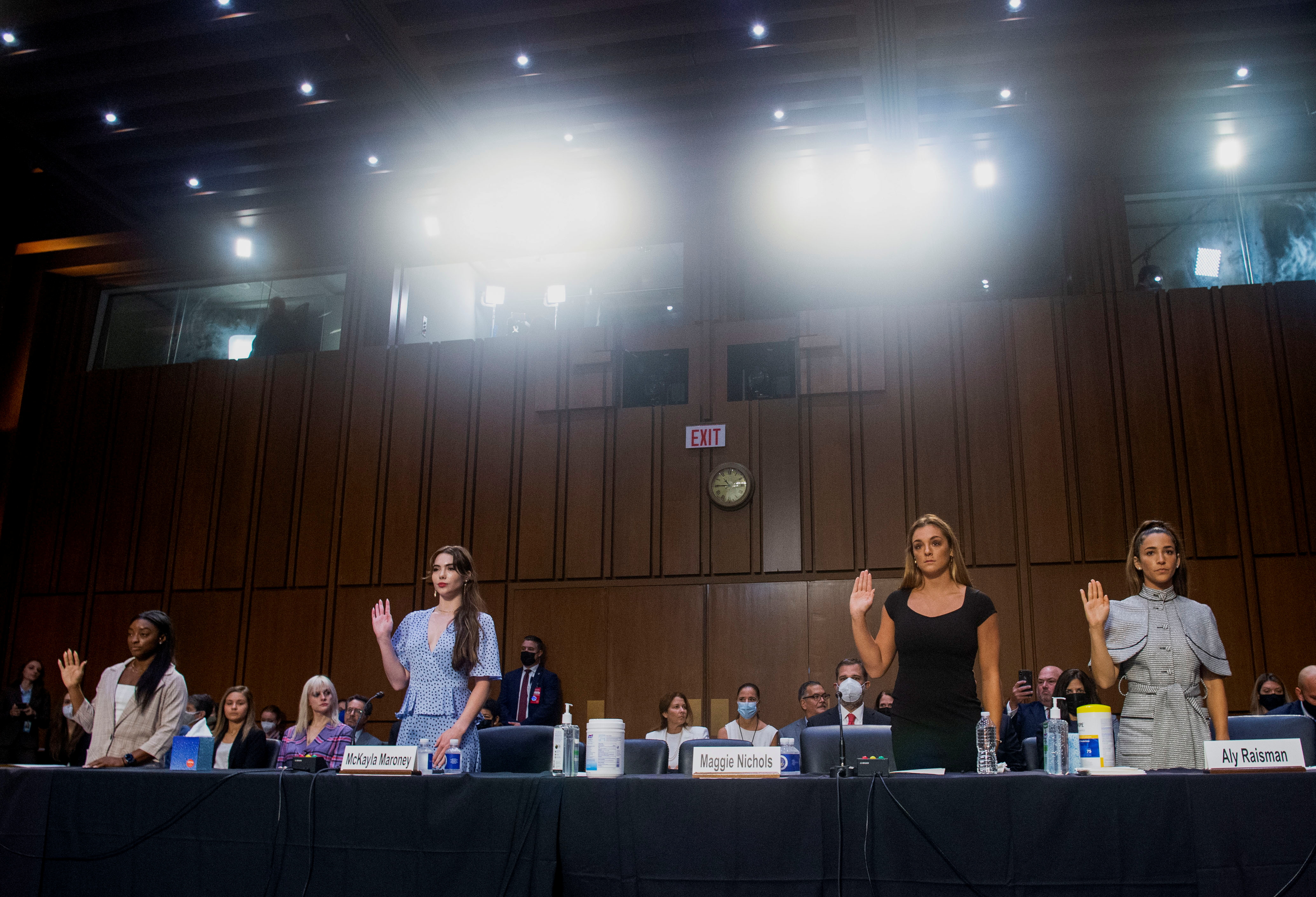 US star gymnasts berate institutions overseen by Congress for failing to investigate years of abuses.