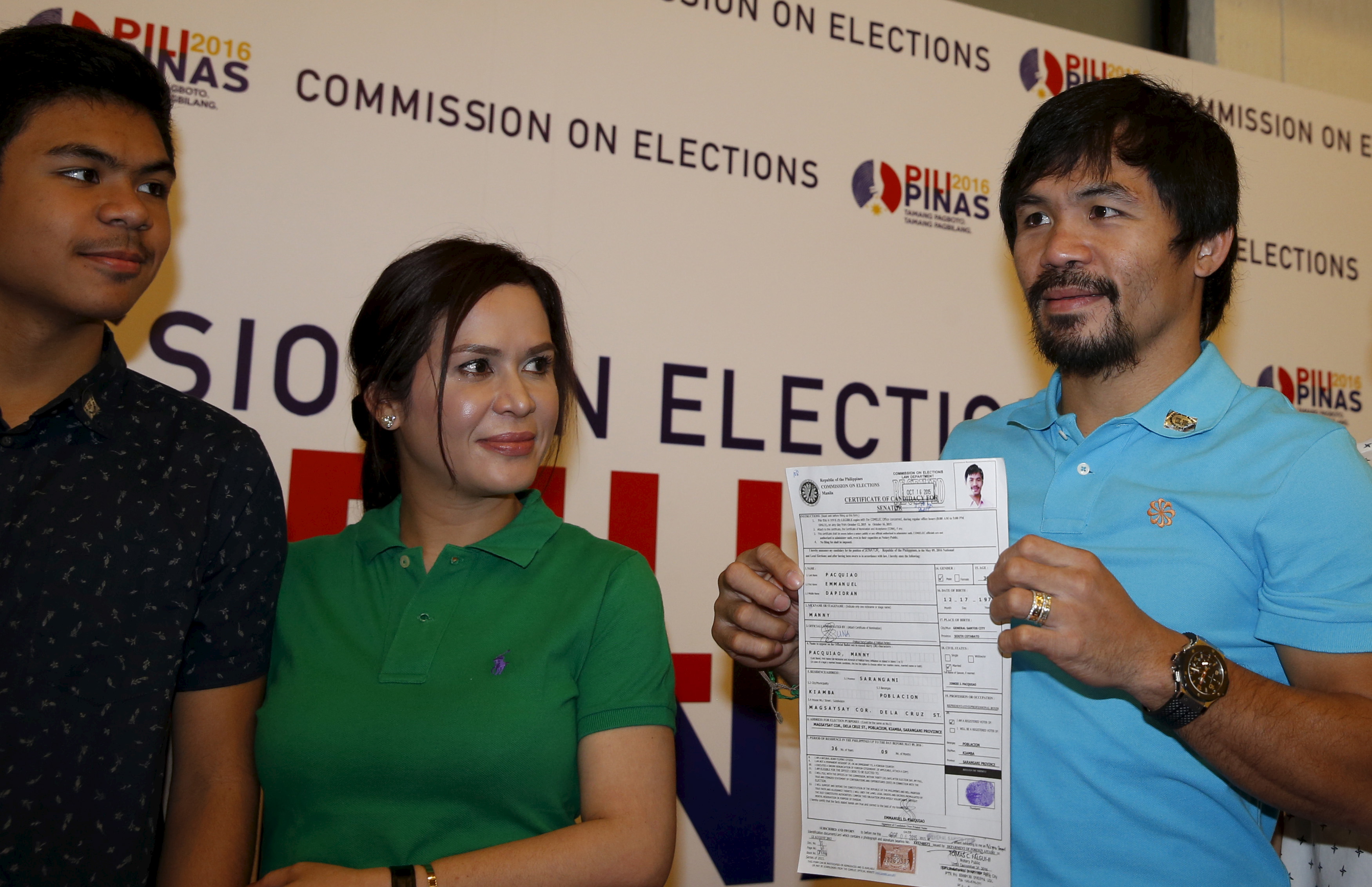 Pacquiao started his political career with a failed congressional run in 2007. He won a seat at the lower house of Congress in 2010, representing the southern Sarangani province.