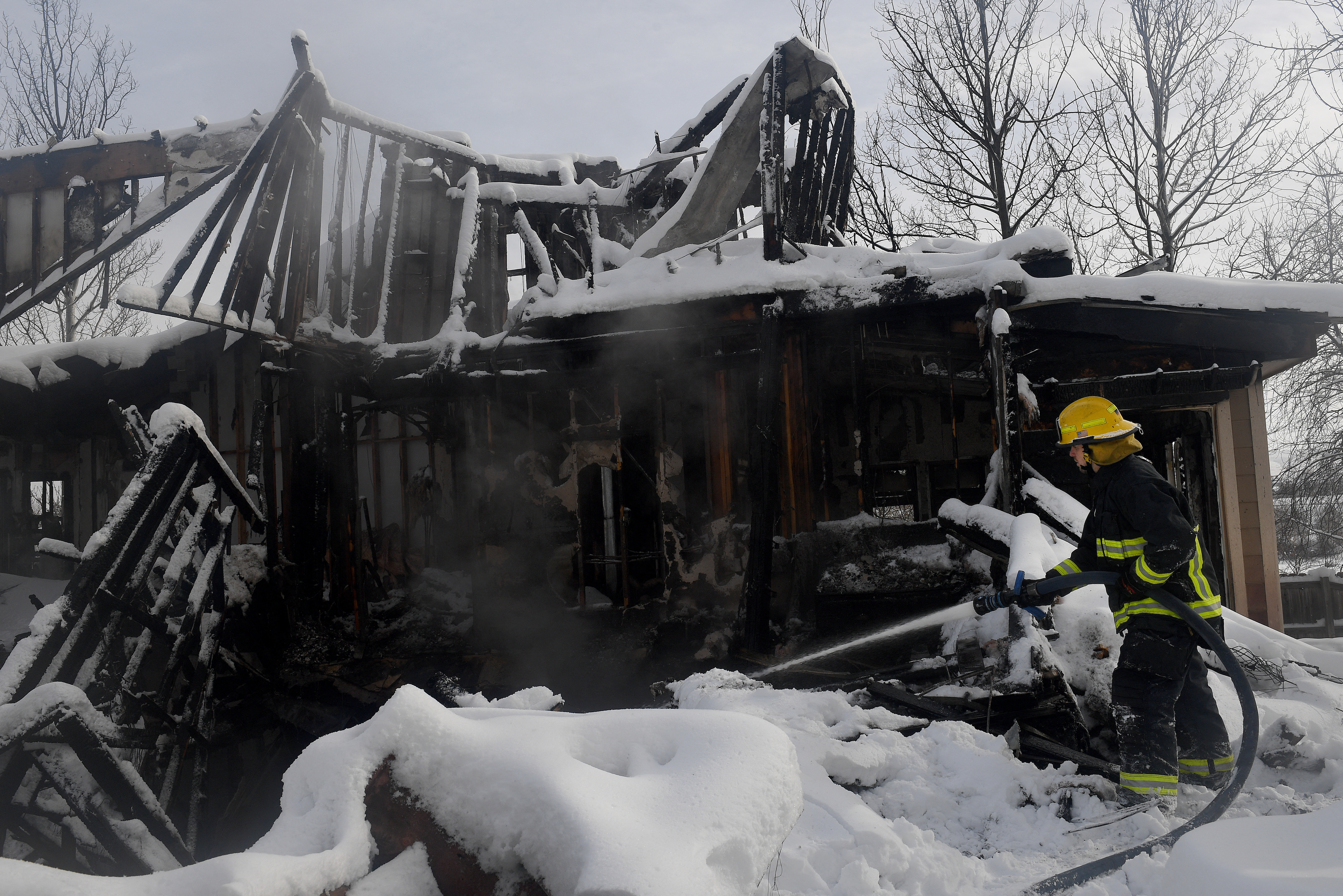 In Boulder County on Saturday, the snow and temperatures in the single digits cast an eerie scene amid still-smouldering remains of homes. The smell of smoke still permeated the empty streets as utility crews struggled to restore electricity and gas service to homes that survived.
