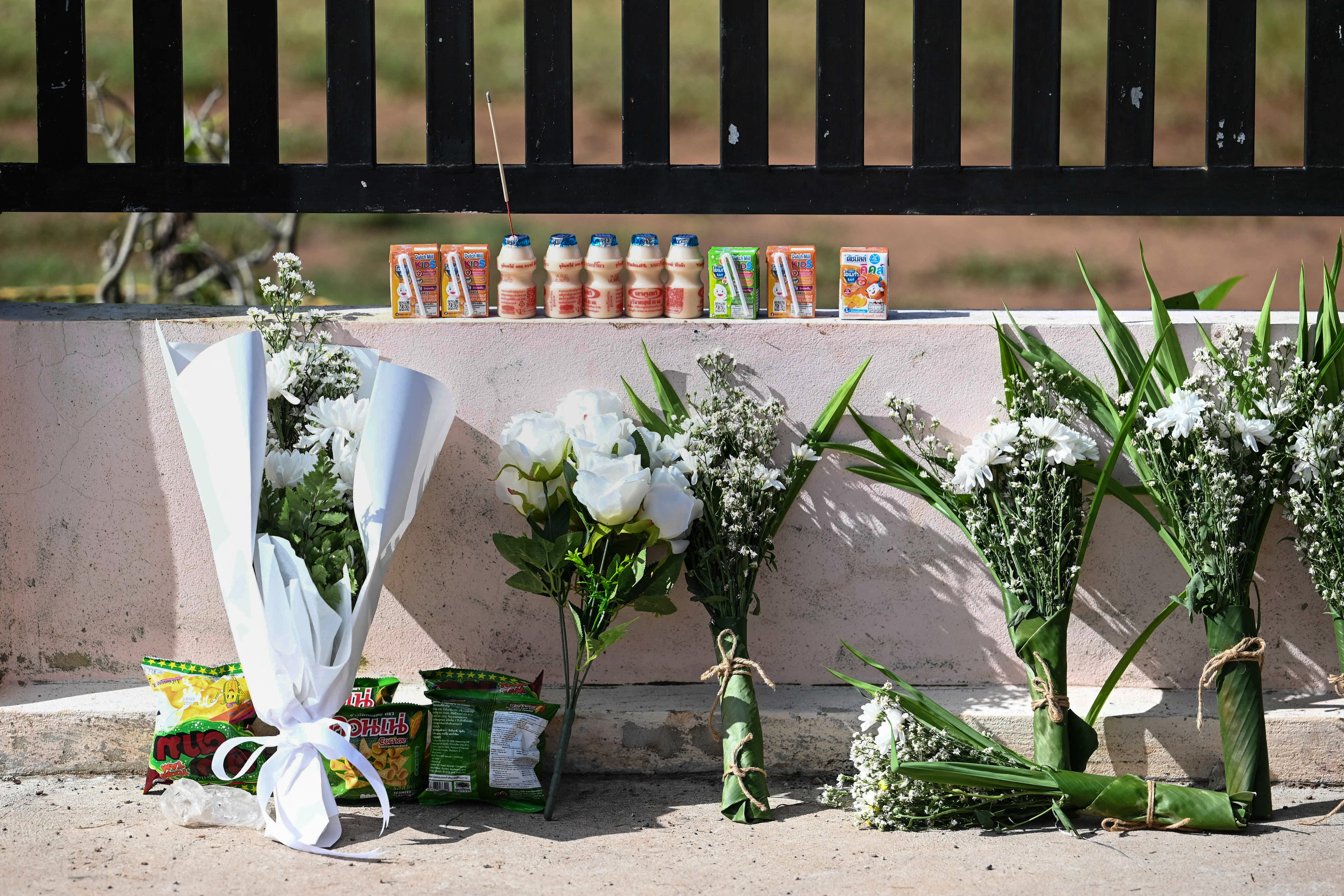 ![Bouquets of flowers and children's drinks are placed outside a nursery in Thailand on October 7 2022, the day after a mass killing by a former police officer in northeastern Nong Bua Lamphu province [AFP/Manan Vatsyayana]](/wp-content/uploads/2022/10/000_32KW6BT.jpg?resize=770%2C513&quality=80)