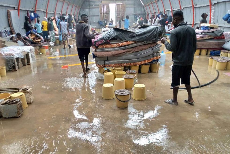 A South Sudanese man told Al Jazeera via a messaging app from inside the Ain Zara detention centre that heavy rains in Tripoli have caused part of the structure to flood, soaking the mattresses habitually placed on the ground.