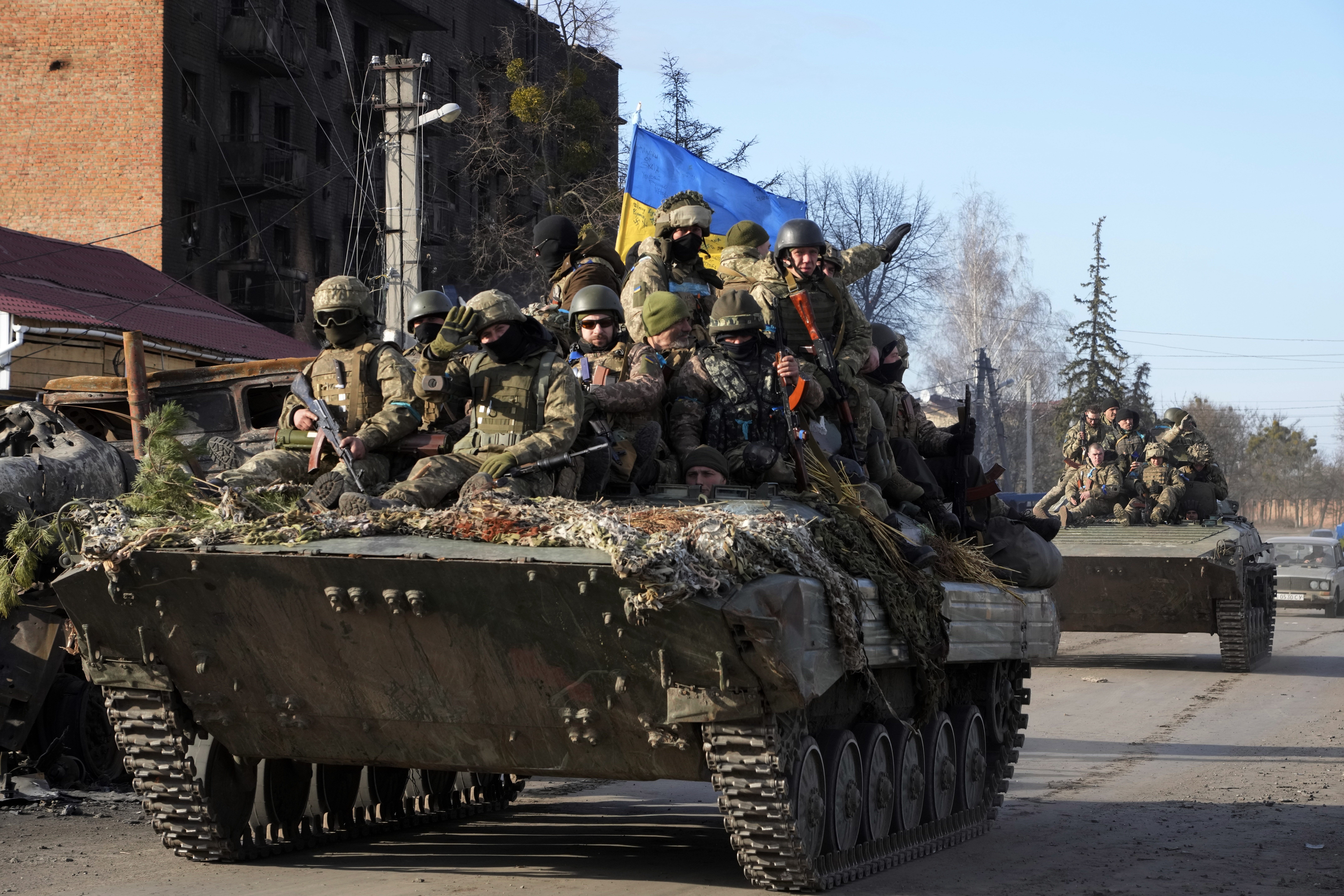 - Ukrainian forces continue to advance against withdrawing Russian forces in the vicinity of Kyiv, British military intelligence said.