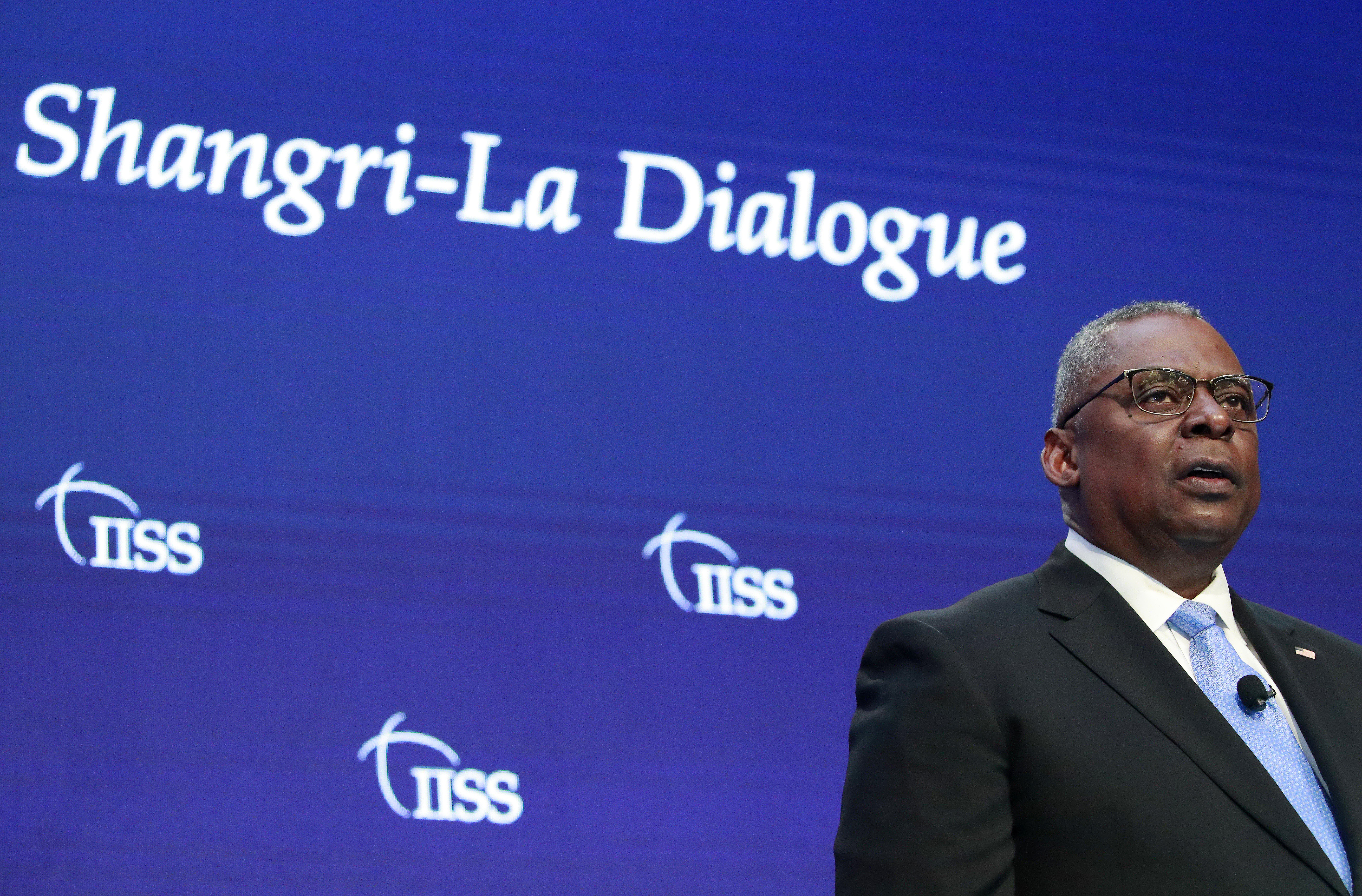 Lloyd Austin tells key security summit that Beijing’s military activities around Taiwan threaten stability.