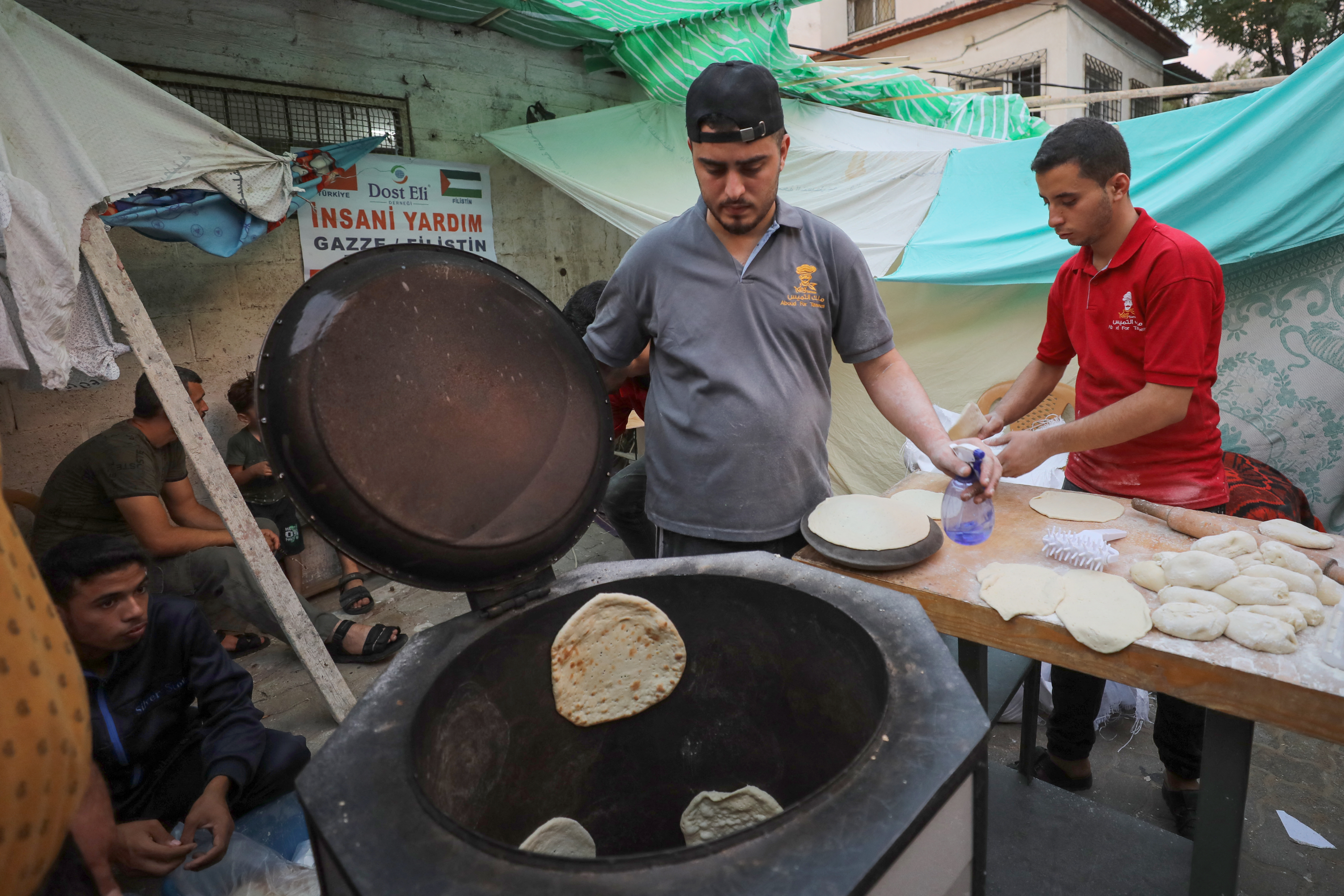 “We cut one piece of bread in half, and if we have access to jam or something else, we put that inside and give it to the children. If not, it’s plain bread. It’s not enough to sustain us, but it’s all we have,” he said.