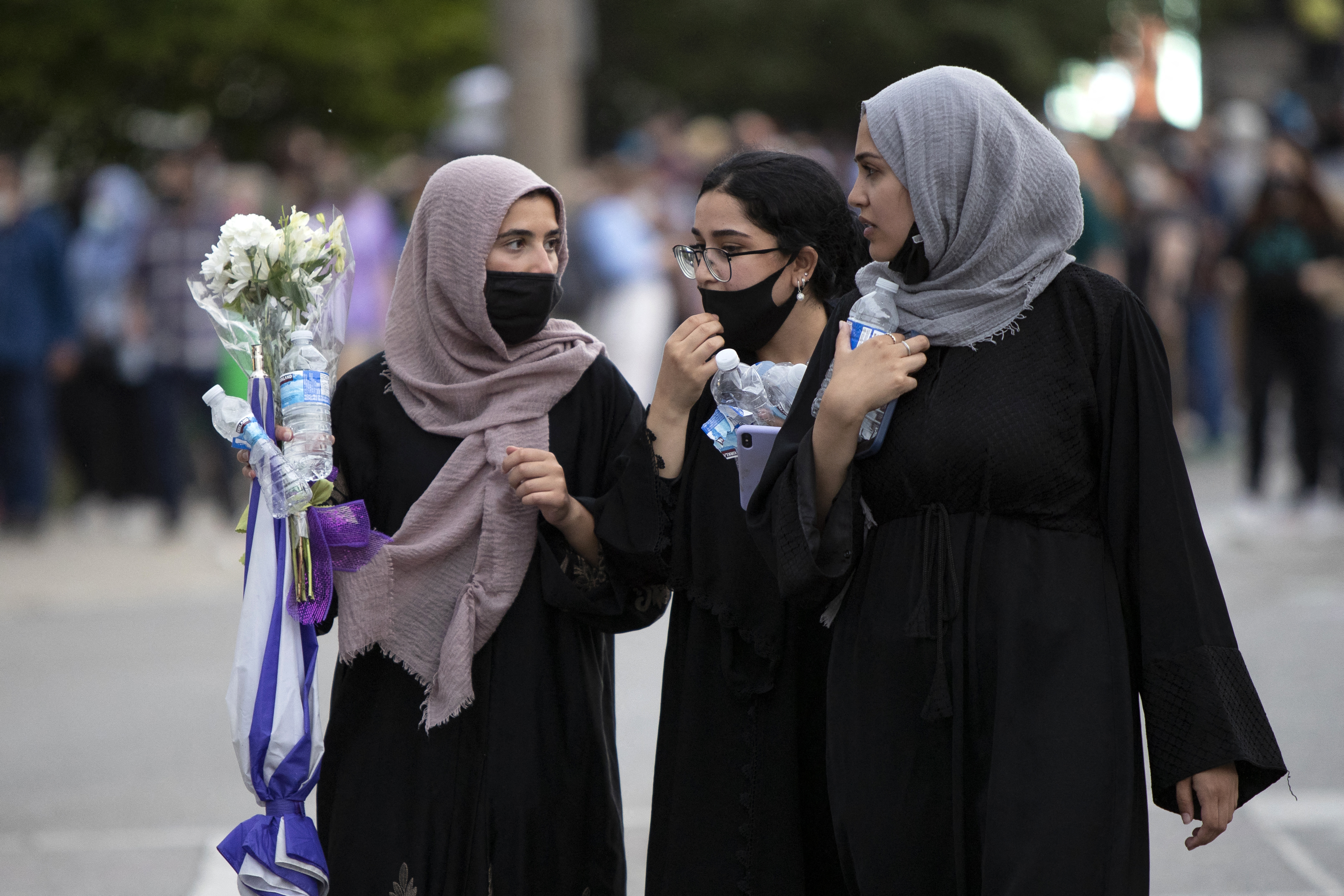 Members of Canada's Muslim community attend a vigil for the victims of the deadly vehicle attack in London, Ontario, on June 8, 2021 [File: Nicole Osborne/ AFP]