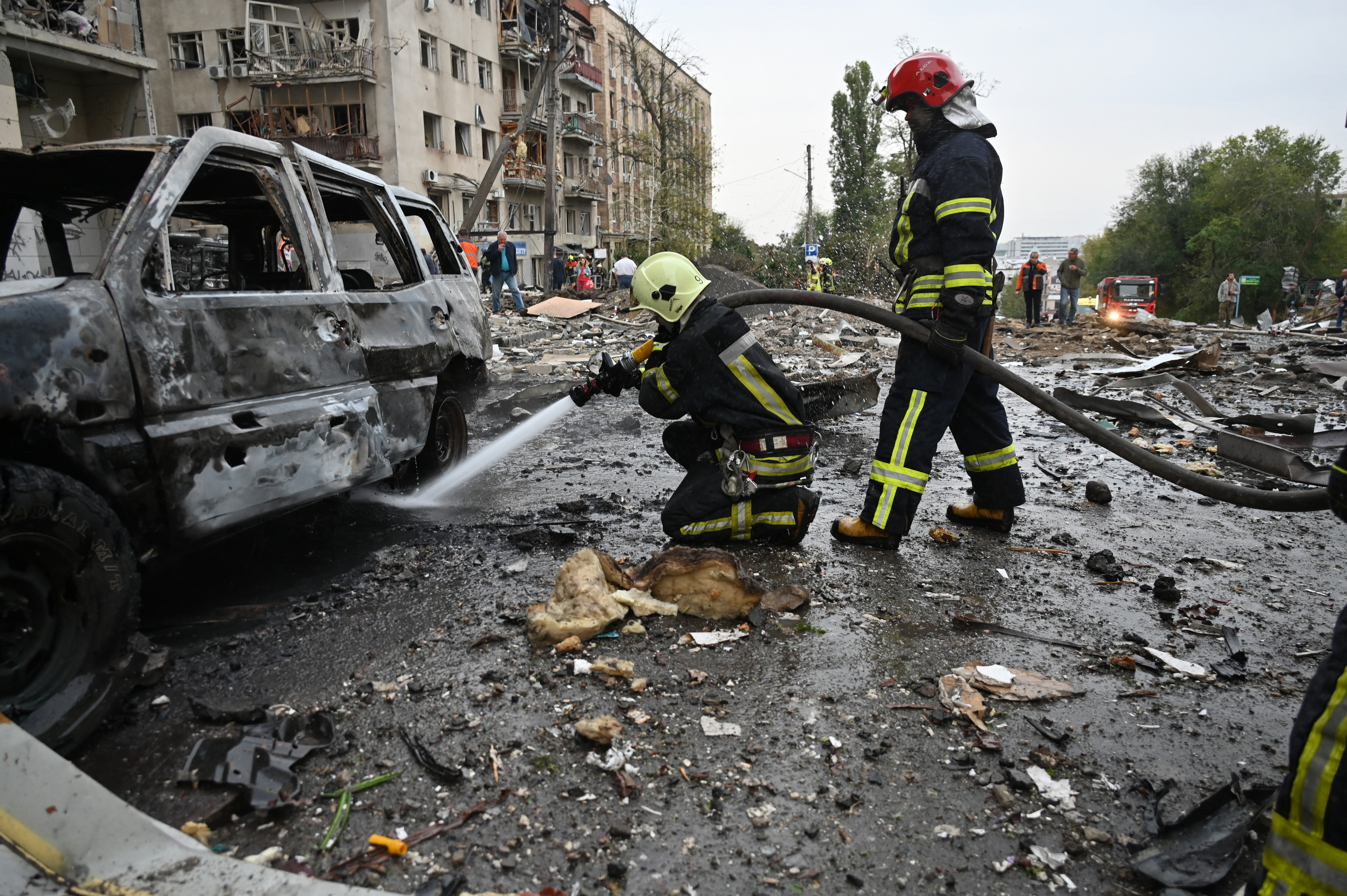 Police in Kharkiv in northeastern Ukraine reported that at least 10 Russian drones hit civilian infrastructure and triggered multiple fires in the city and shelling also damaged buildings.