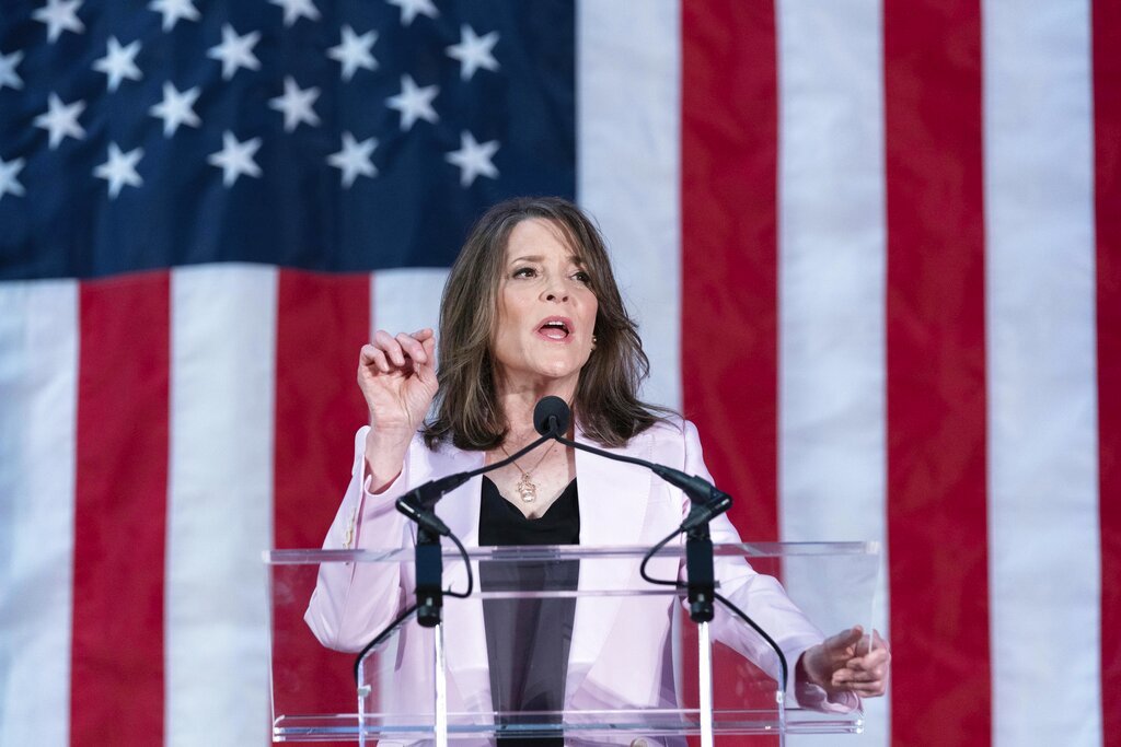 Marianne Williamson is making a long-shot bid for the Democratic nomination in 2024, hoping to push progressive priorities [File: Jose Luis Magana/AP Photo]