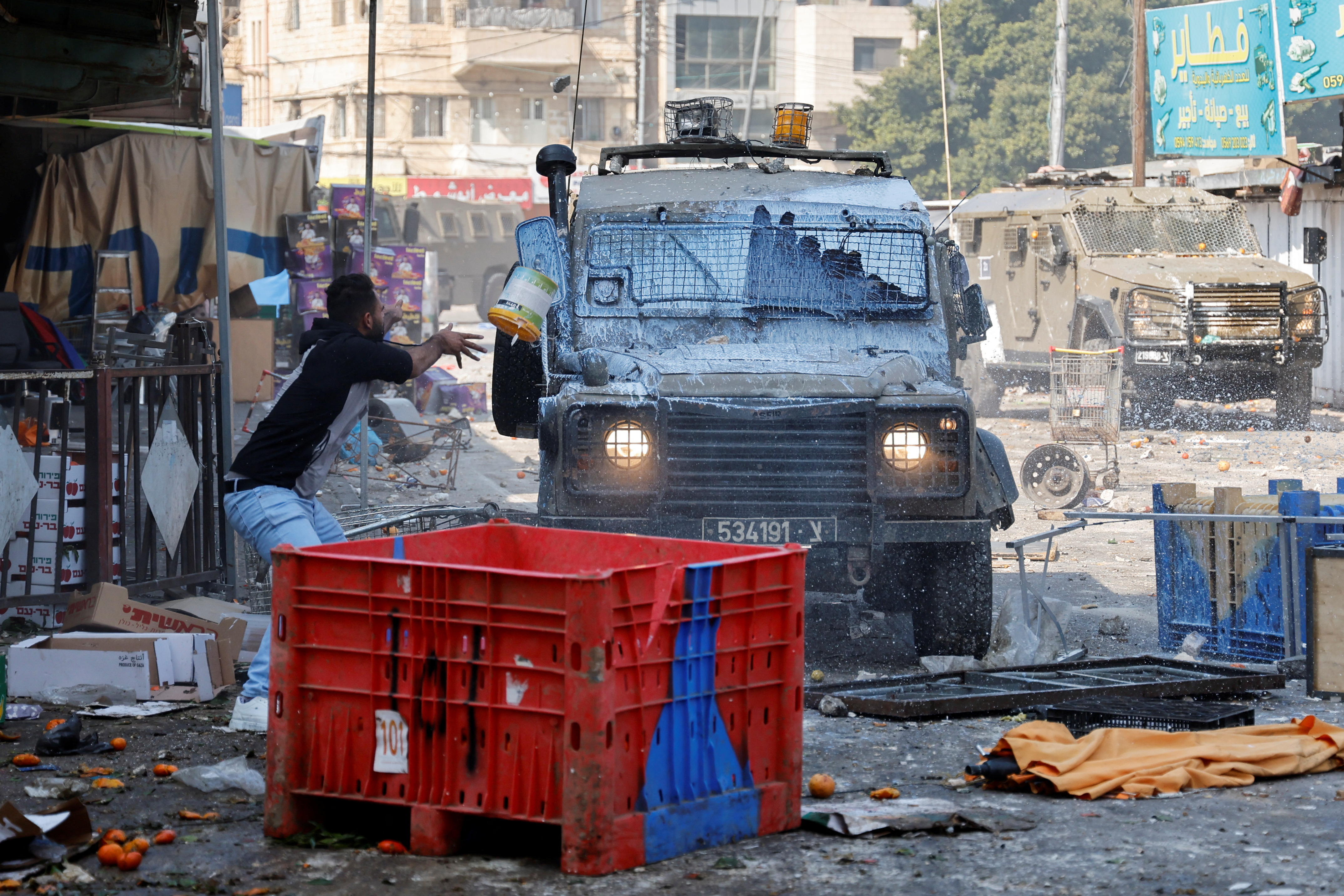 The Lions’ Den armed group said in a statement it engaged in clashes with Israeli forces during the raid, alongside the recently announced Balata Brigades. Young Palestinians pelted armoured troop transports with rocks.
