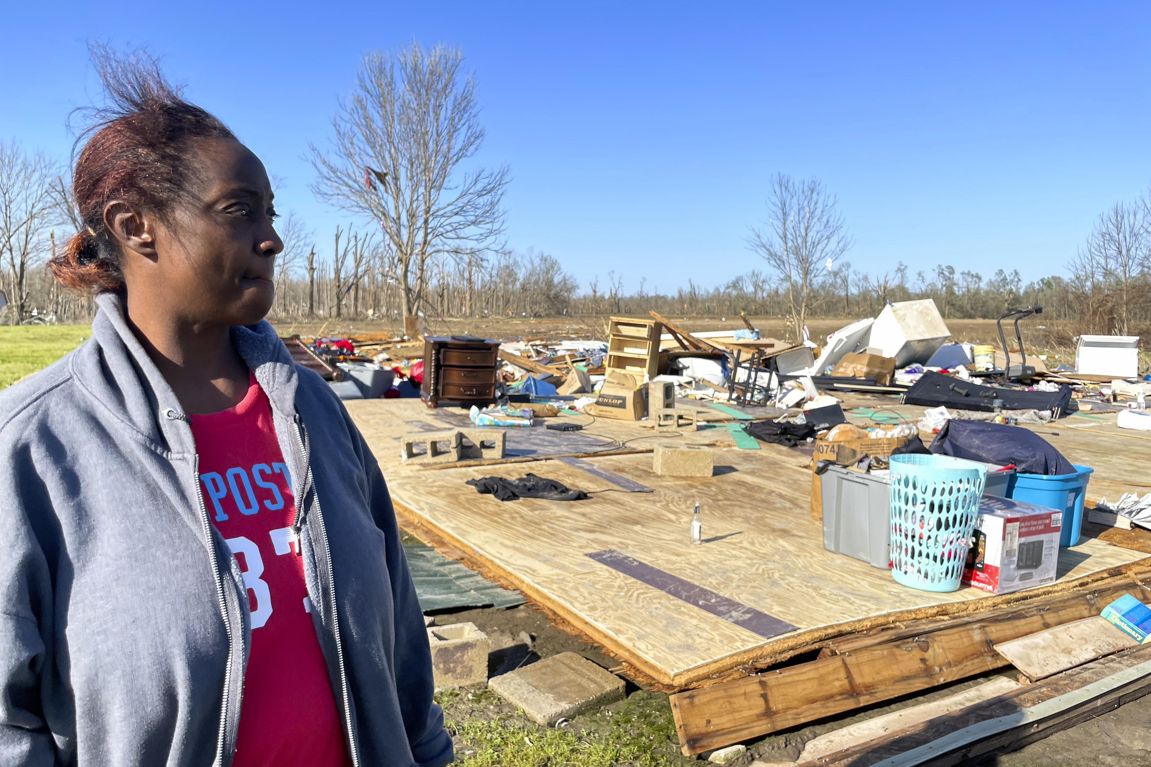 A tornado obliterated the modest one-storey home that Kimberly Berry shared with her two daughters in the Mississippi Delta flatlands, leaving only a foundation and some random belongings – a toppled refrigerator, a dresser and matching nightstand, a bag of Christmas decorations and some clothing.