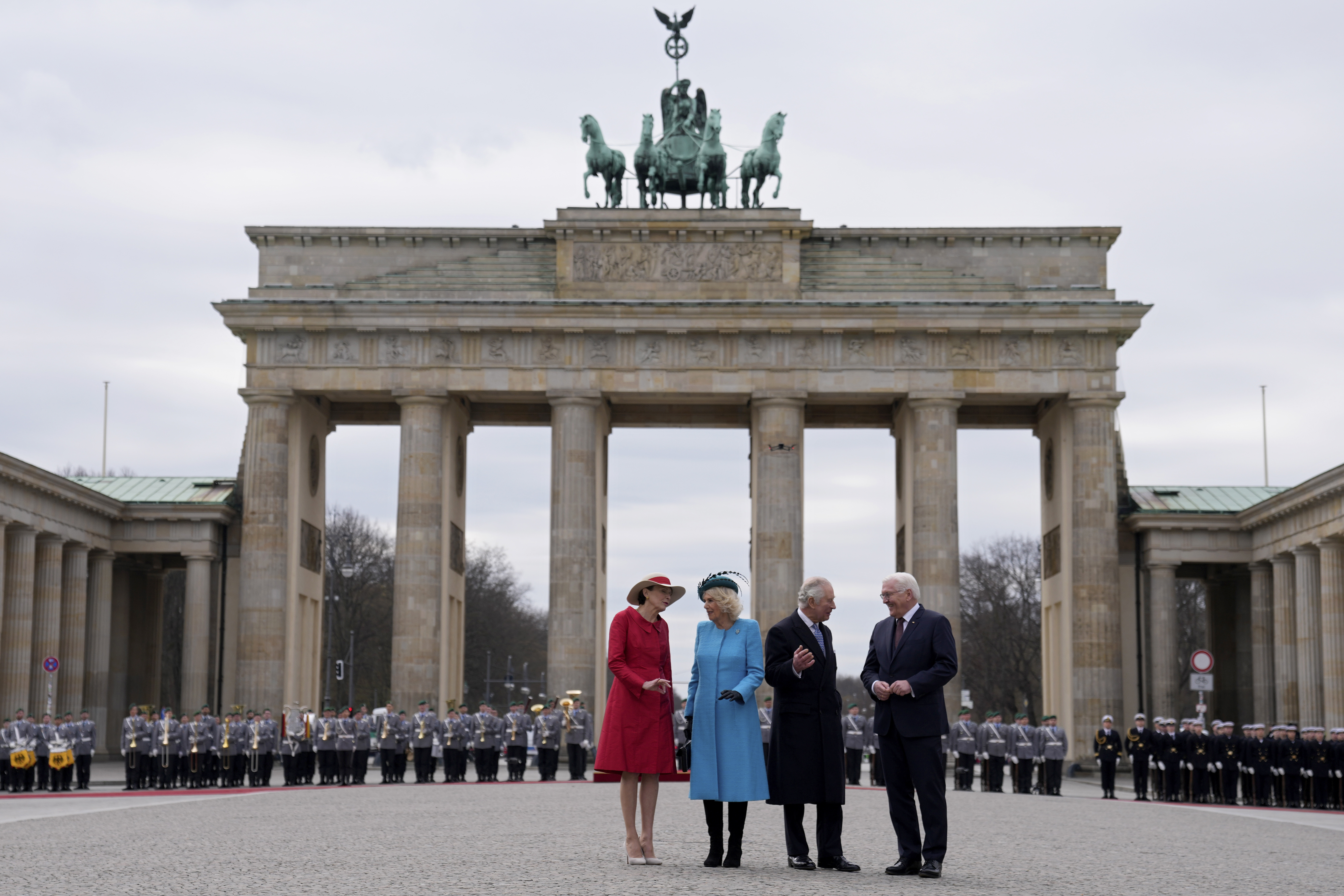 Steinmeier and his wife Elke Budenbender met the British royals at Berlin’s Brandenburg Gate and then accompanied and hosted them at a white-tie dinner at Schloss Bellevue, the German president’s official residence.