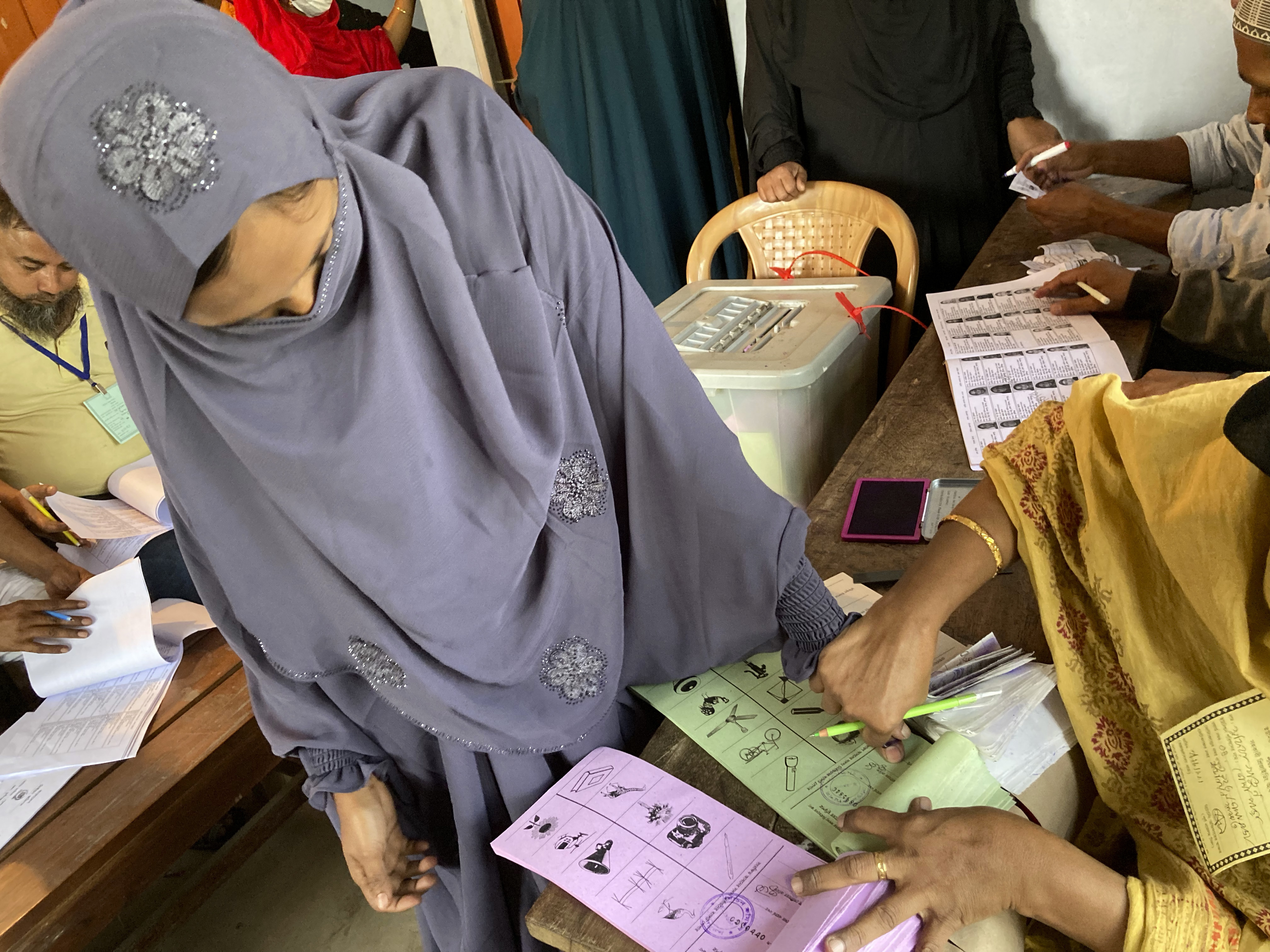A voter gives her thumb imprint before proceeding to vote at a polling centre in Munshiganj district of Bangladesh [File: Al-emrun Garjon/AP]