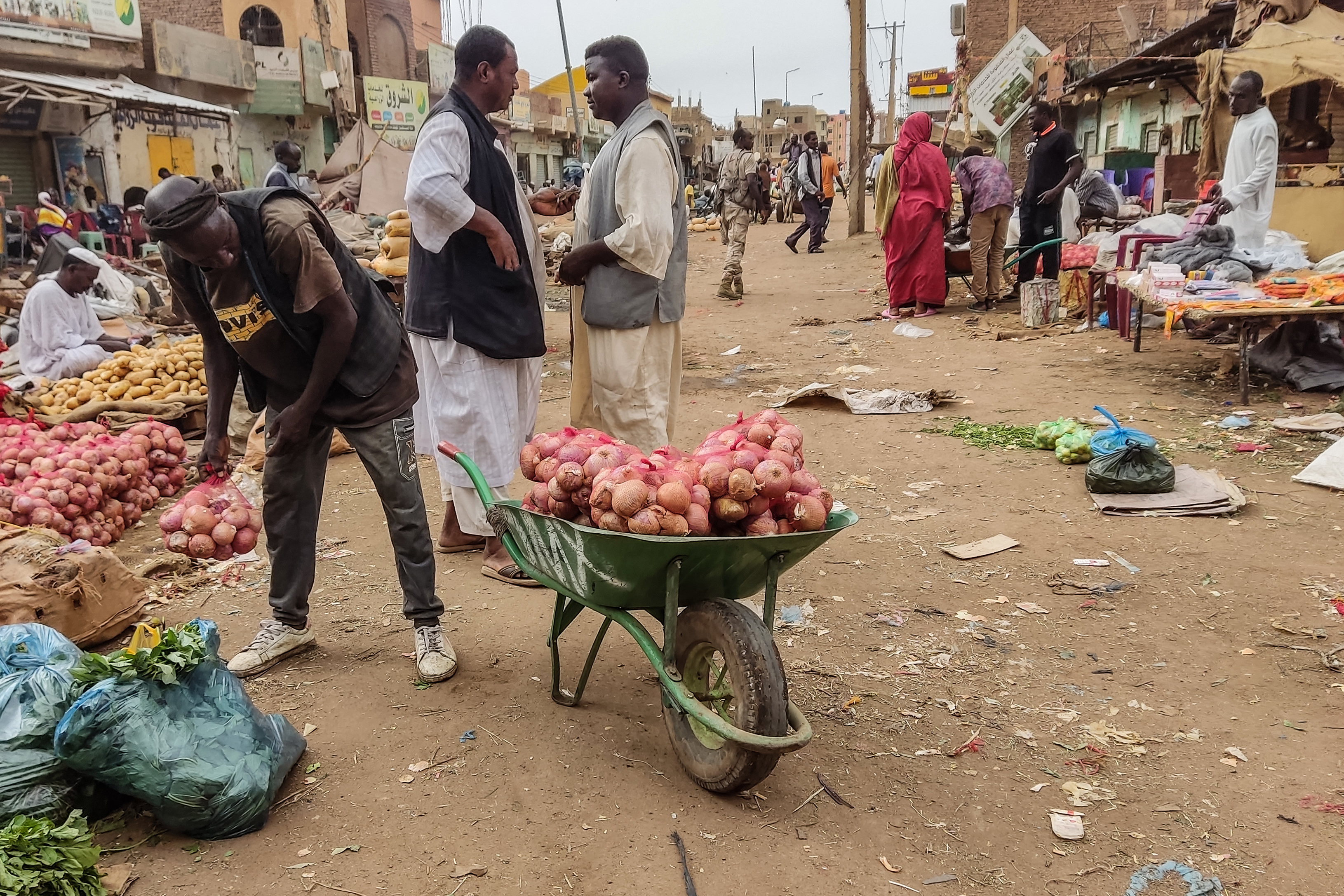 In one Khartoum market, people were seen scrambling to stock up on fruit and other basic goods.
