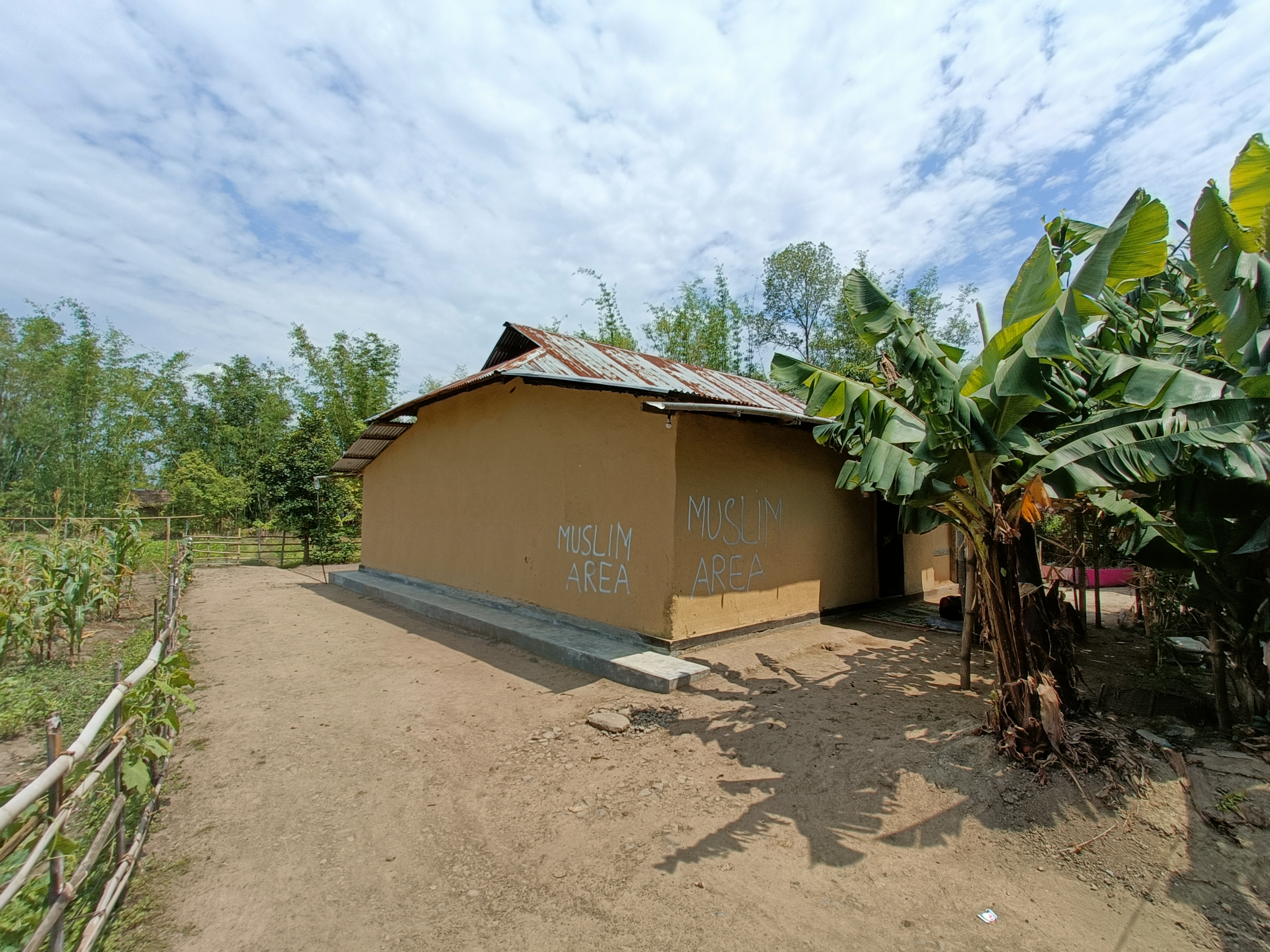 Hussain’s neighbour Rafiuddin, who also fled the village on the day, pointed in the direction of a house whose tin roof was barely visible through the trees. “That is the Meitei bunker. That’s from where the commandos and other Meitei volunteers shoot in Ward 9,” he alleged.