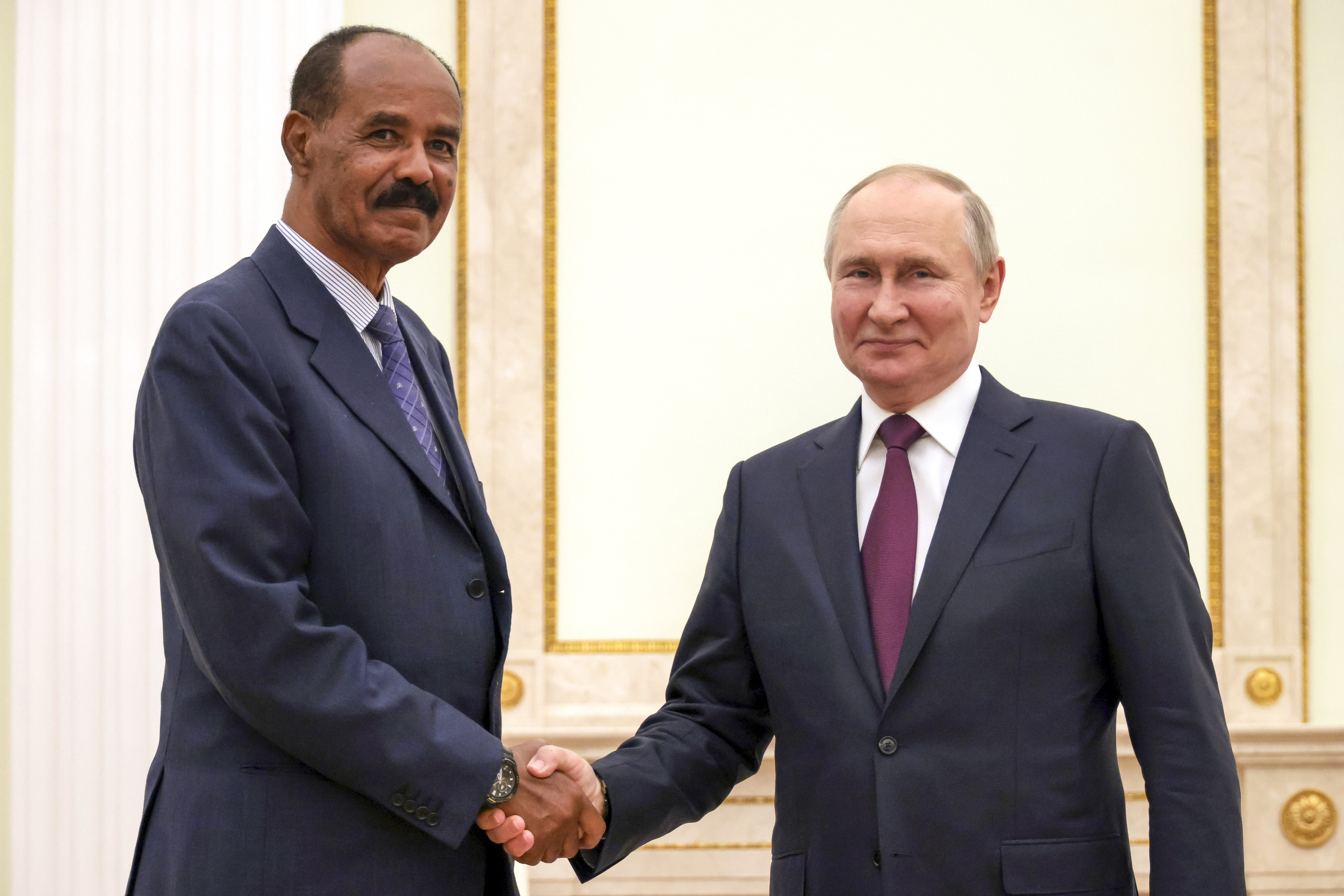 ![Russian President Vladimir Putin, right, and President of the State of Eritrea Isaias Afwerki pose for a photo prior to their talks at the Kremlin in Moscow, Russia, Wednesday, May 31, 2023 [Mikhail Metzel, Sputnik, Kremlin Pool Photo via AP]](/wp-content/uploads/2023/06/AP23151526117617-1686657947.jpg?resize=770%2C513&quality=80)