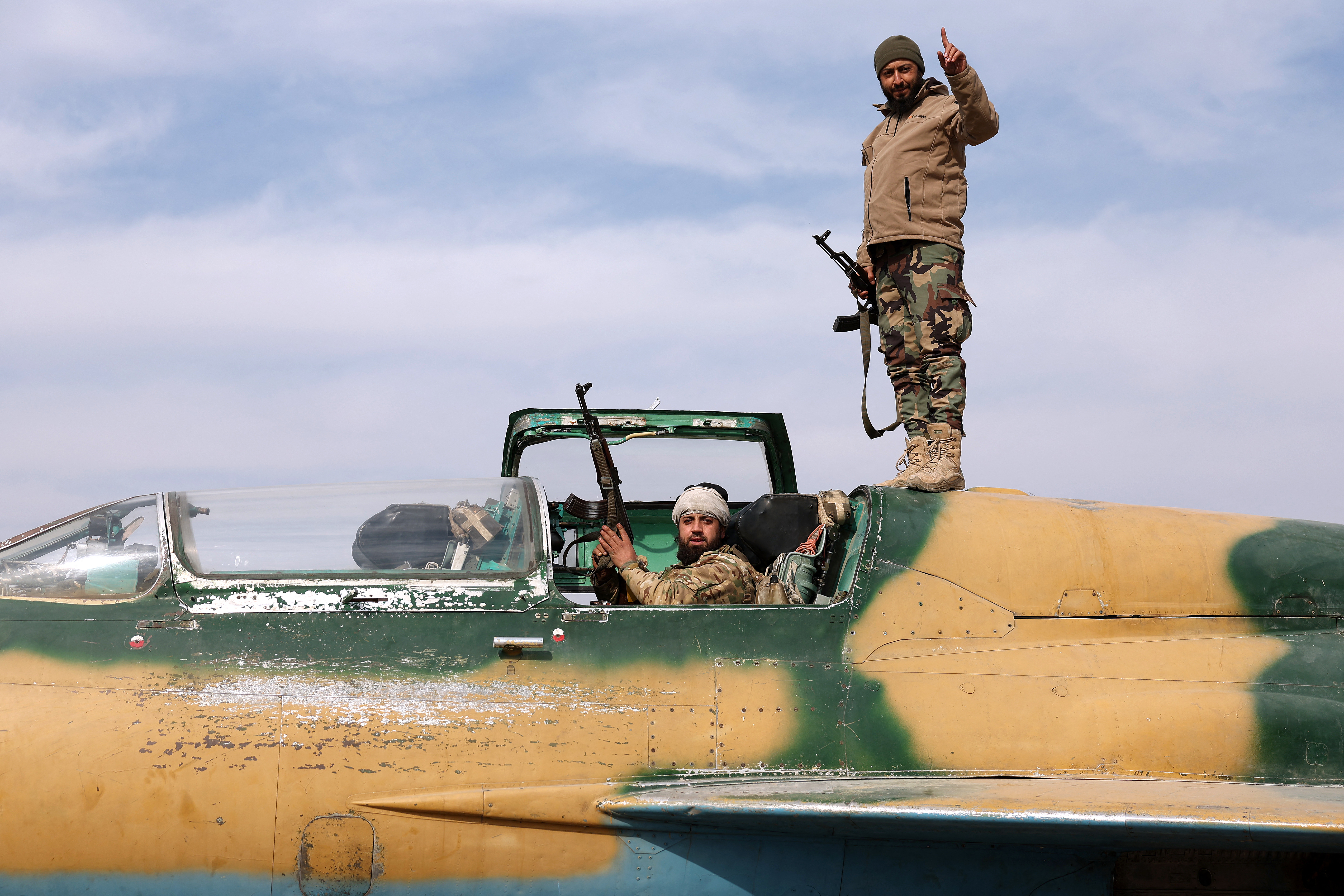 ![Anti government fighters gesture as they check a Syrian army jet after they took over a military airbase near the central city of Hama, on December 6, 2024. [OMAR HAJ KADOUR / AFP]](/wp-content/uploads/2024/12/syria-1733562391.jpg?resize=770%2C513&quality=80)