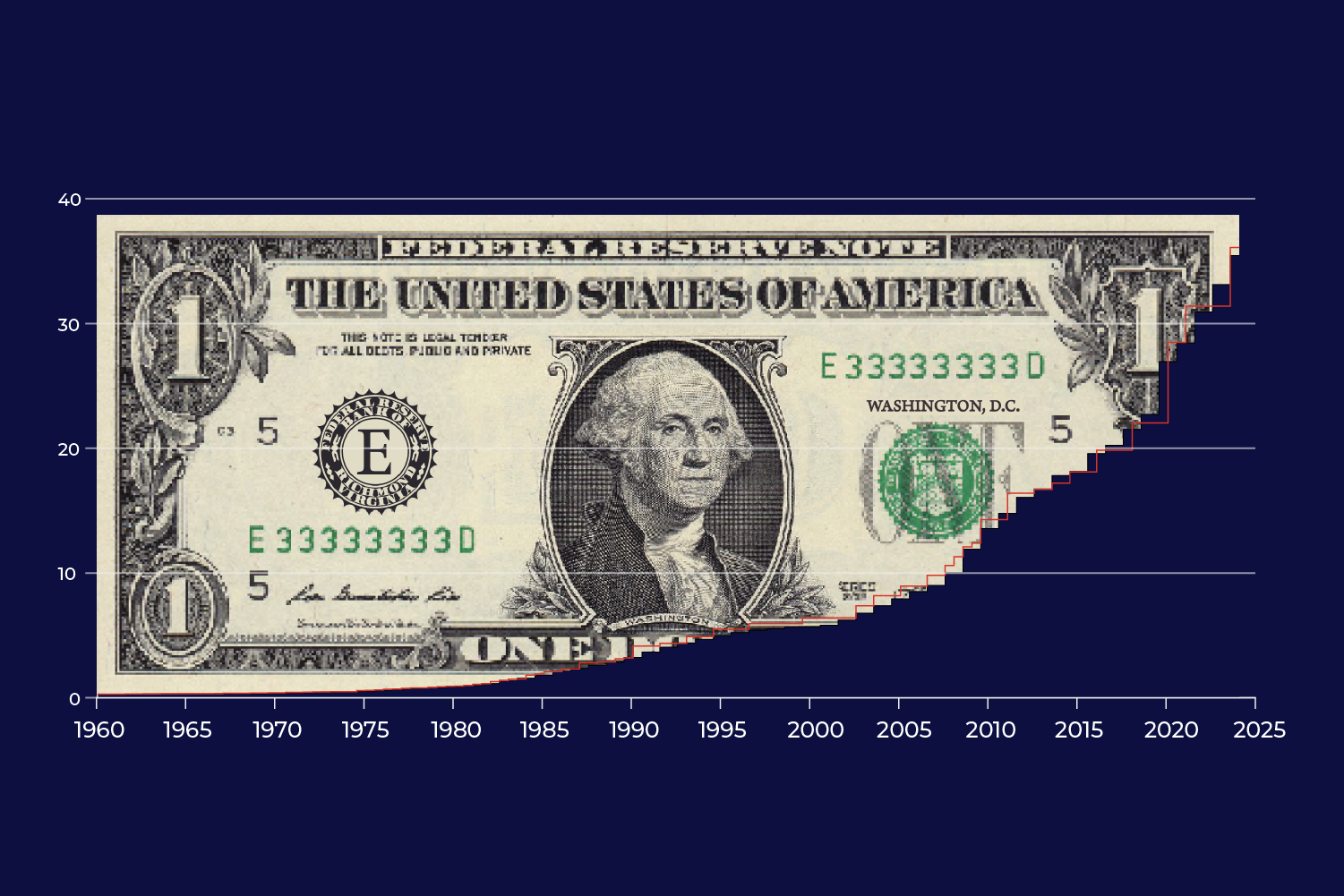 Over the past 50 years, the share of US debt held by foreign entities has increased fivefold. In 1970, only 5 percent was owned by overseas investors; today, that figure has risen to 25 percent.