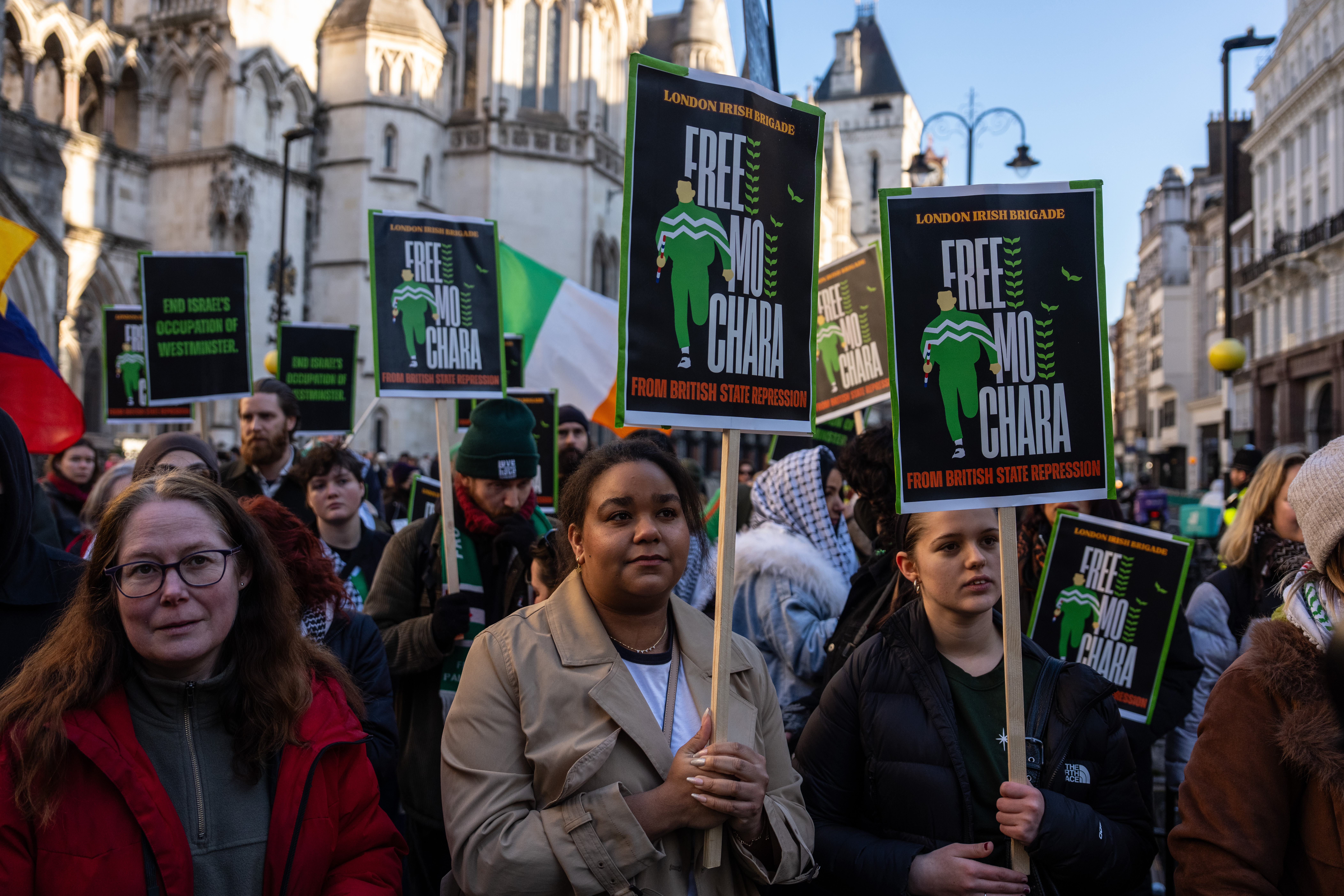 About 100 Kneecap supporters also turned up at the court to show their support, holding Irish and Palestinian flags, singing songs and listening to speeches.