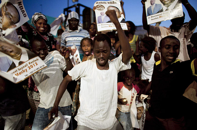 Victory celebrations in Dakar as Macky Sall heads to landslide win over longtime incumbent President Abdoulaye Wade.
