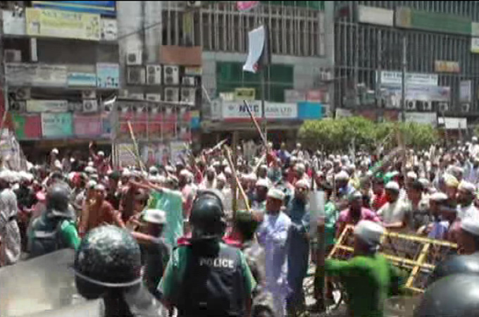 Supporters of Hifazat carried sticks and had blocked major entry points to the city, sealing off Dhaka.