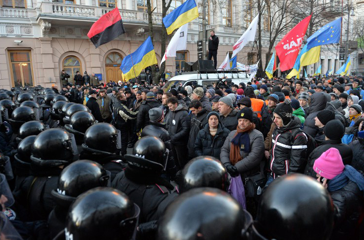 Outside, demonstrations are continuing and crowds are now blockading the main government buildings, in an ongoing standoff after President Viktor Yanukovych failed to sign a key EU pact.