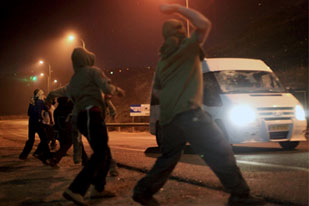 Witnesses said that the settlers threw rocks at any Palestinians who were forced to stop their cars by obstructions in the road.