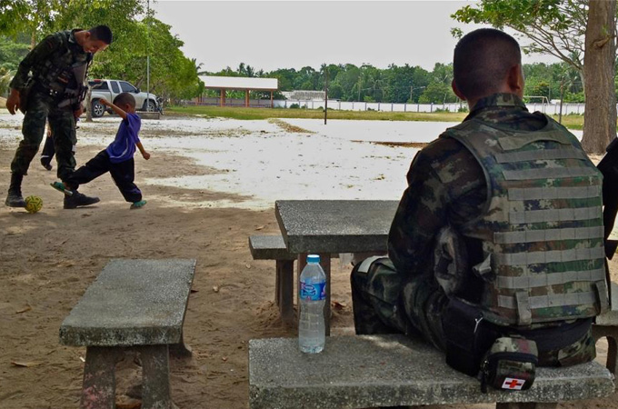 On the morning we join Thailand’s rangers on a patrol in Pattani province, a brazen bomb attack takes out five soldiers. Lieutenant Colonel Narisorn Khemkhun explains the tactics militants use and how soldiers counter them. He relies heavily on veterans like Captain Saksin Chunthong, who has fought countless battles but says the hardest one is the battle to win the hearts and minds of the locals.