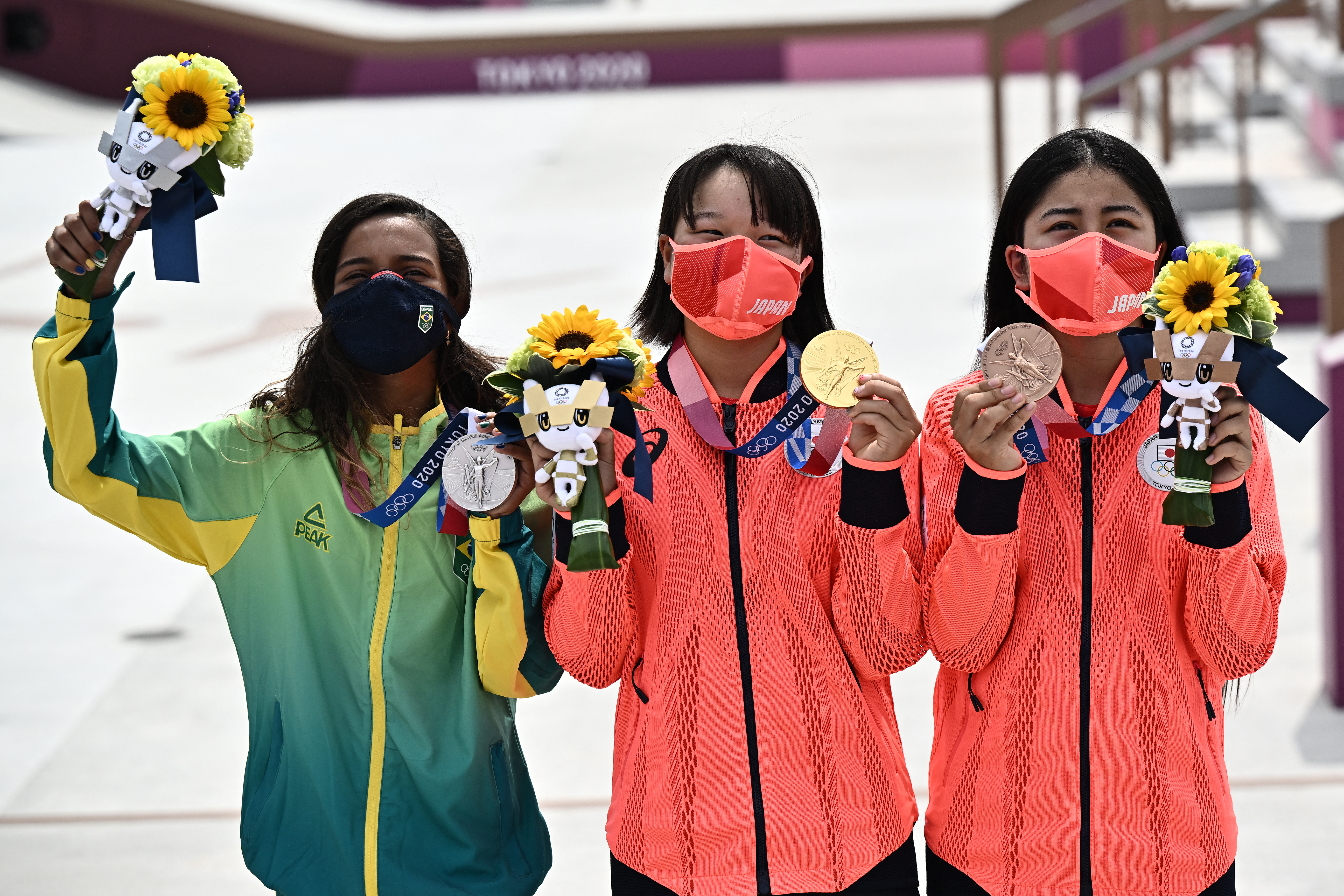 On the Olympic podium with her on Monday, two other female athletes – aged 13 and 16 – stood wearing silver and bronze medals around their necks, rewards for landing tricks most kids their age only get to see on Instagram.