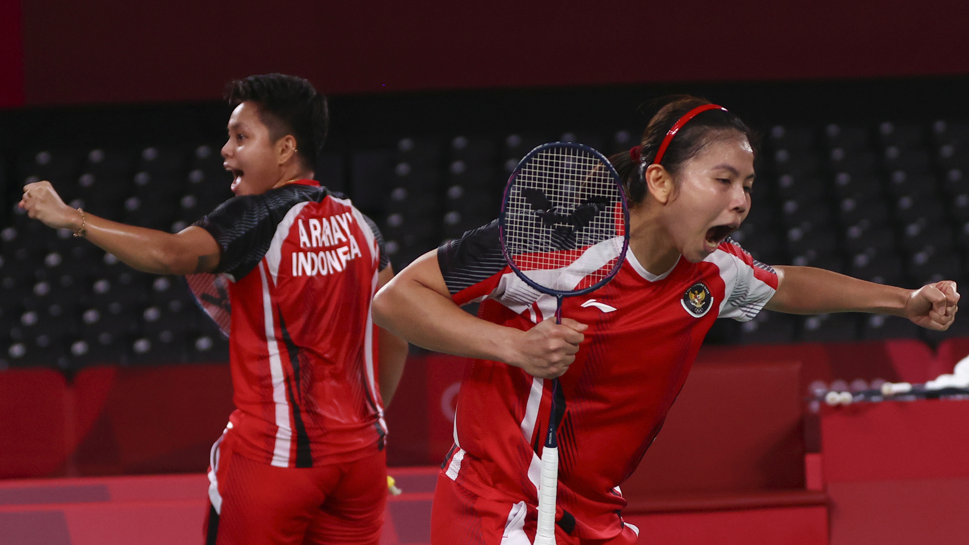 On Saturday morning, when Greysia Polii and Apriyani Rahayu became the first Indonesian women doubles team to make a badminton final at the Olympics the two women’s delight echoed around an almost empty arena.