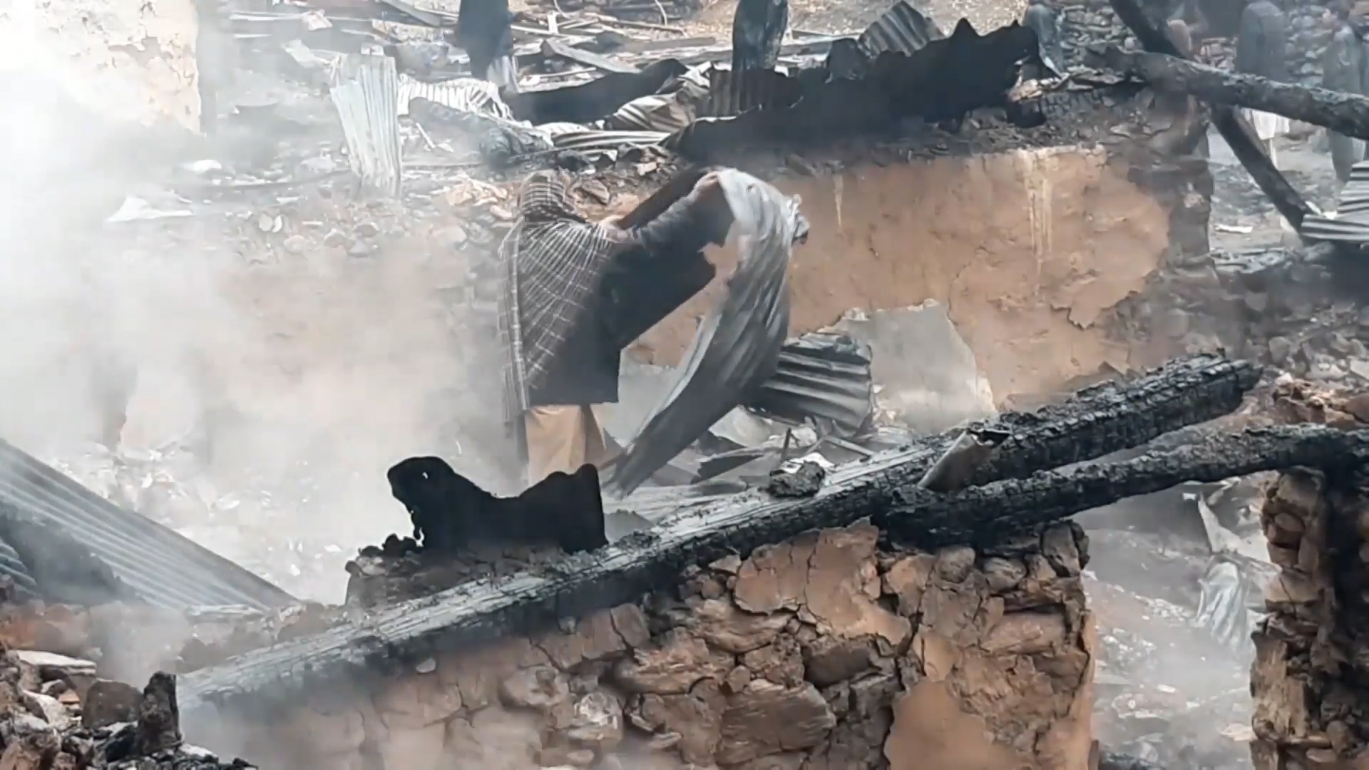 Villagers in Neelum Valley in Pakistan-administered Kashmir examine the remains of their homes and bury the dead after fierce cross-border fighting between India and Pakistan.