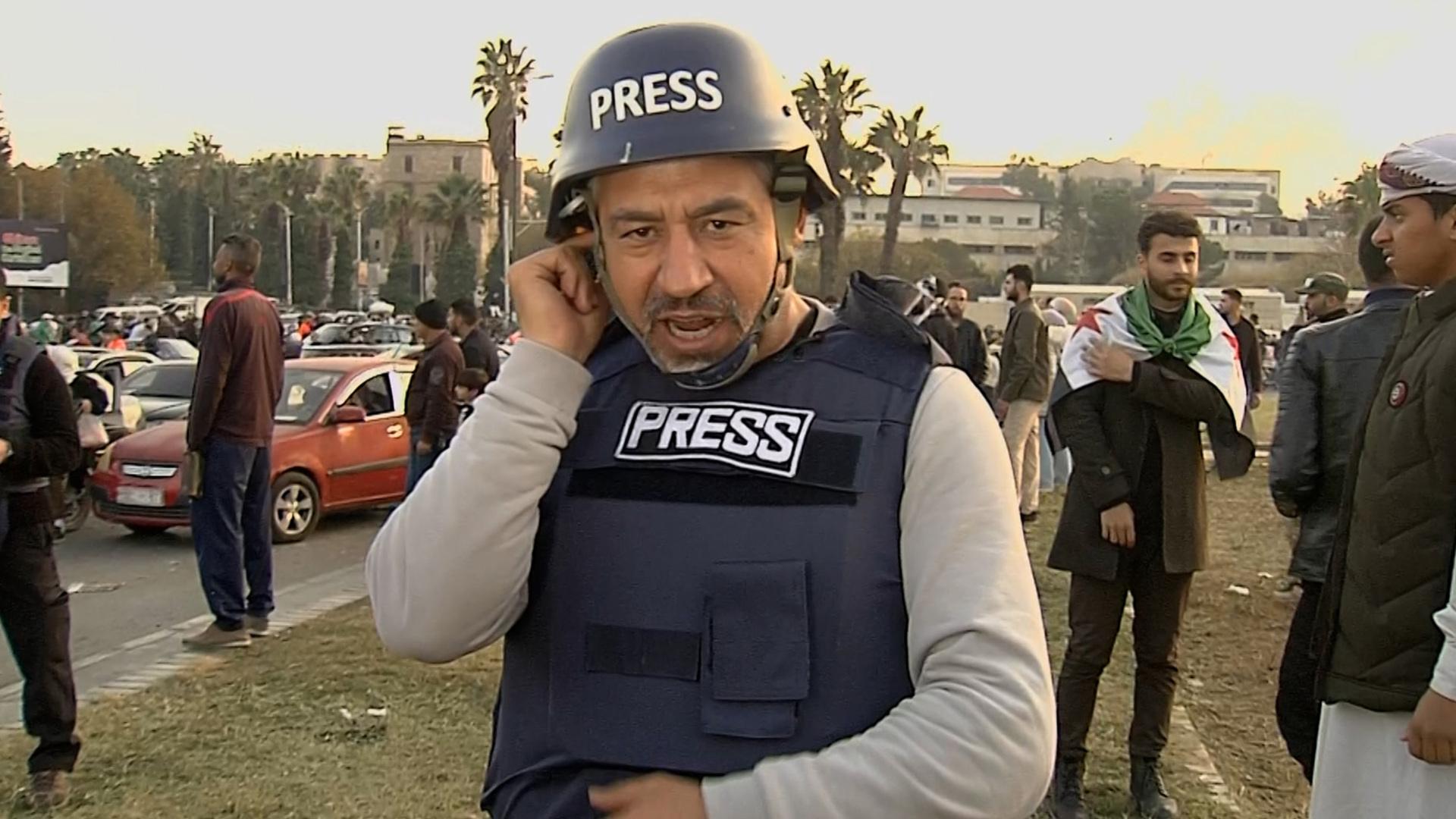 Al Jazeera reporter nearly drowned out by celebrations in Damascus