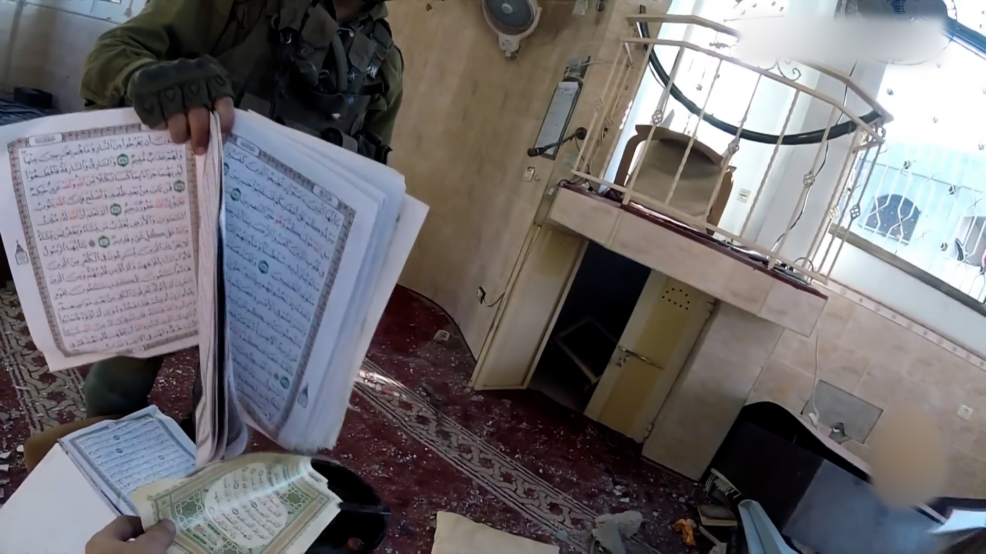 Video of Israeli forces burning the Quran and bombing Gaza mosque