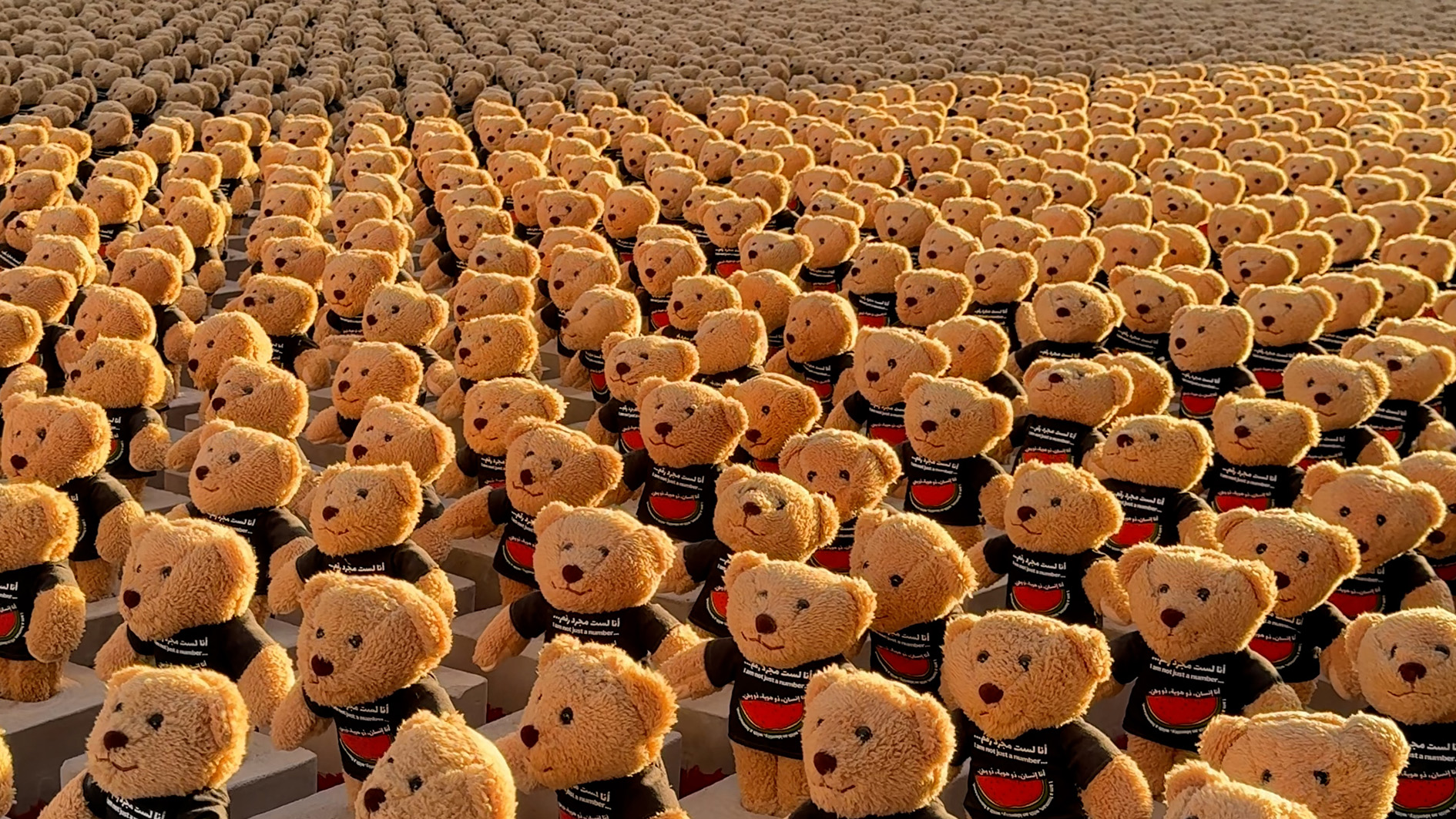 Artist uses 15,000 teddy bears in memorial to Gaza’s children