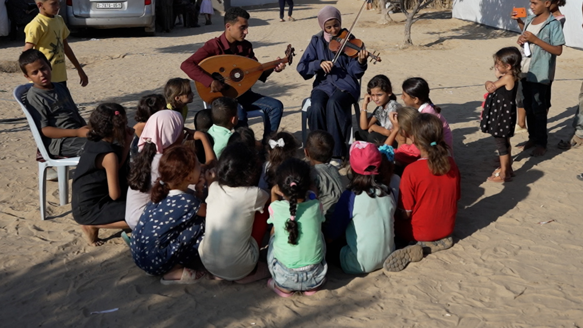Gaza music students use talent to inspire children displaced by war