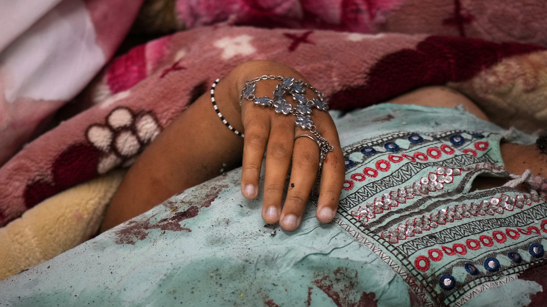 Palestinian children were dressed in shrouds to cover their new clothes, after Israeli bombing in Gaza killed them on the first day of Eid al-Fitr.