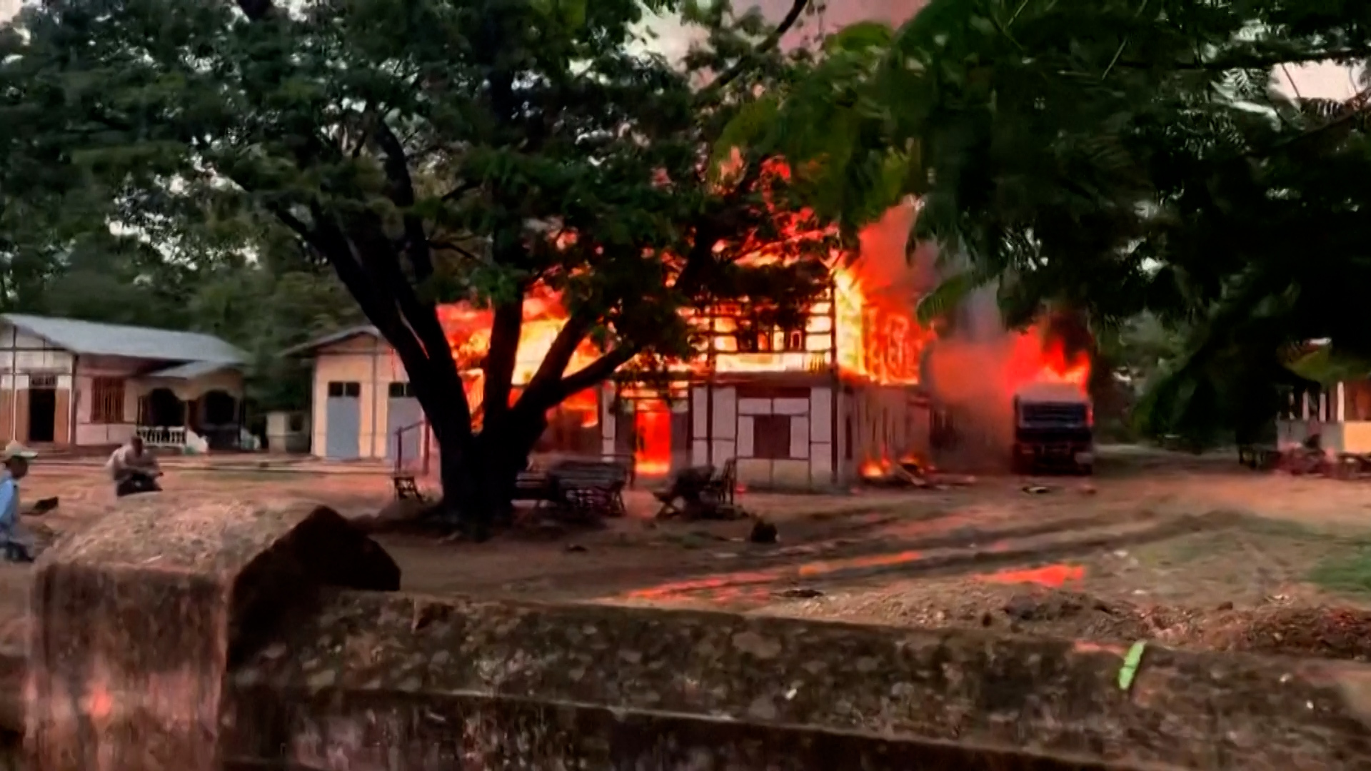 Military jet crashes in Myanmar, homes set ablaze
