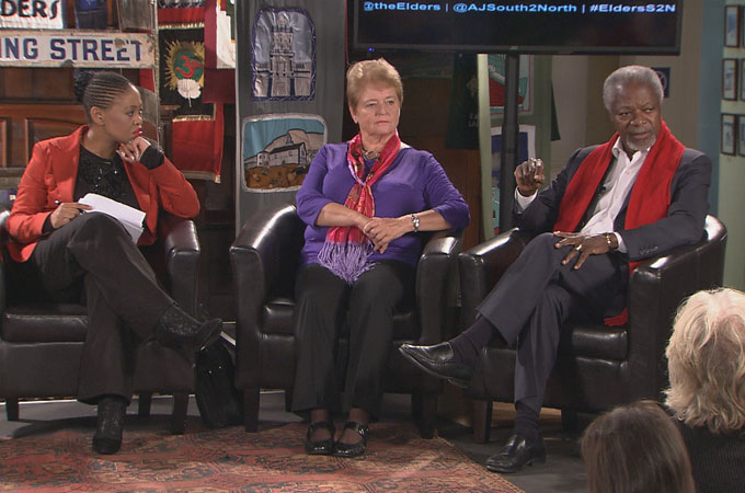 South2North is joined by two African Nobel Prize winners – Archbishop Desmond Tutu, who chaired South Africa’s Truth and Reconciliation Commission; and Kofi Annan, the former secretary general of the UN; as well as Dr Gro Harlem Bruntland, the former prime minister of Norway; and Hina Jilani, a Pakistani human rights activist.